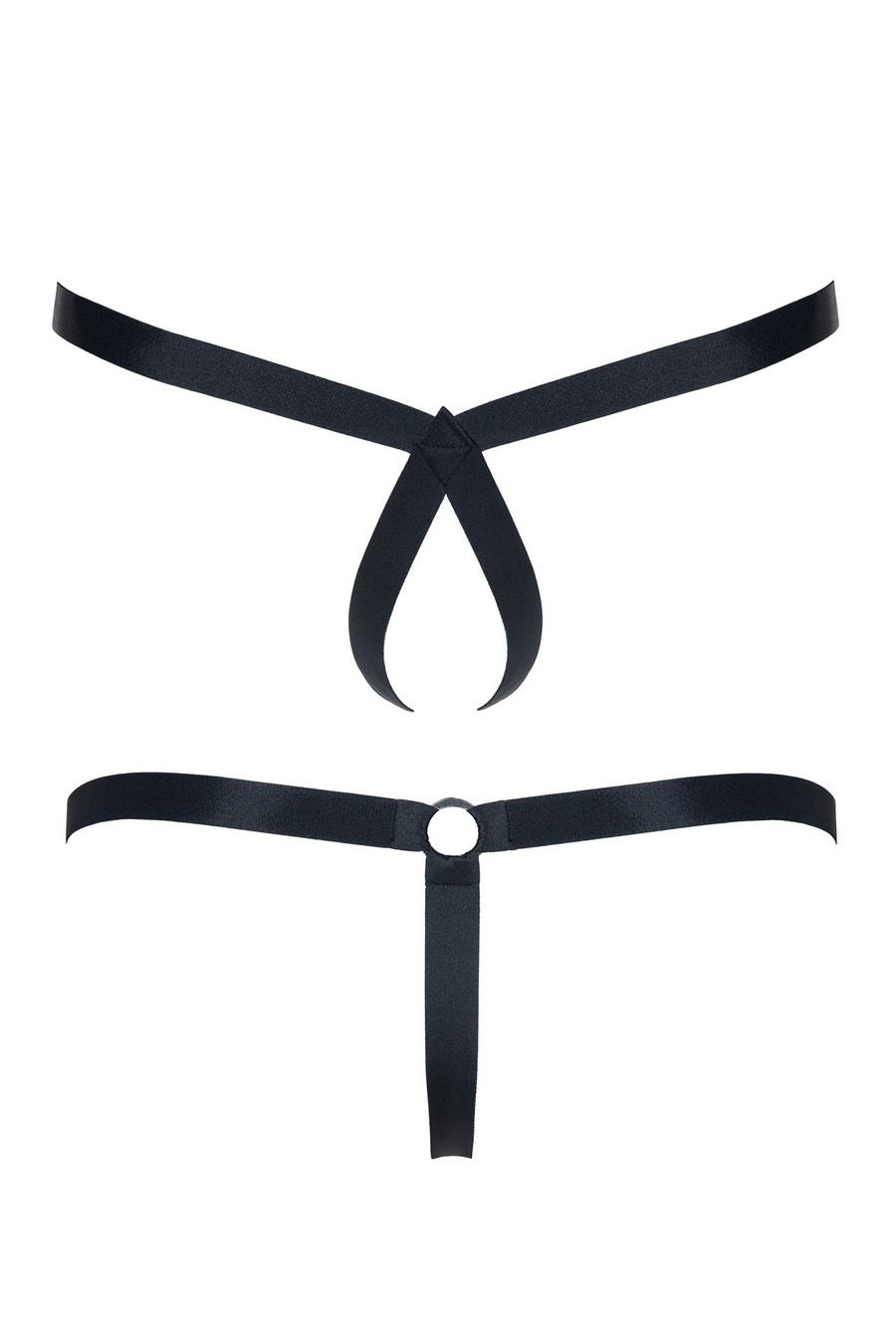 męskie stringi z wetlooka z otwartym tyłem i elementem dekoracyjnym L