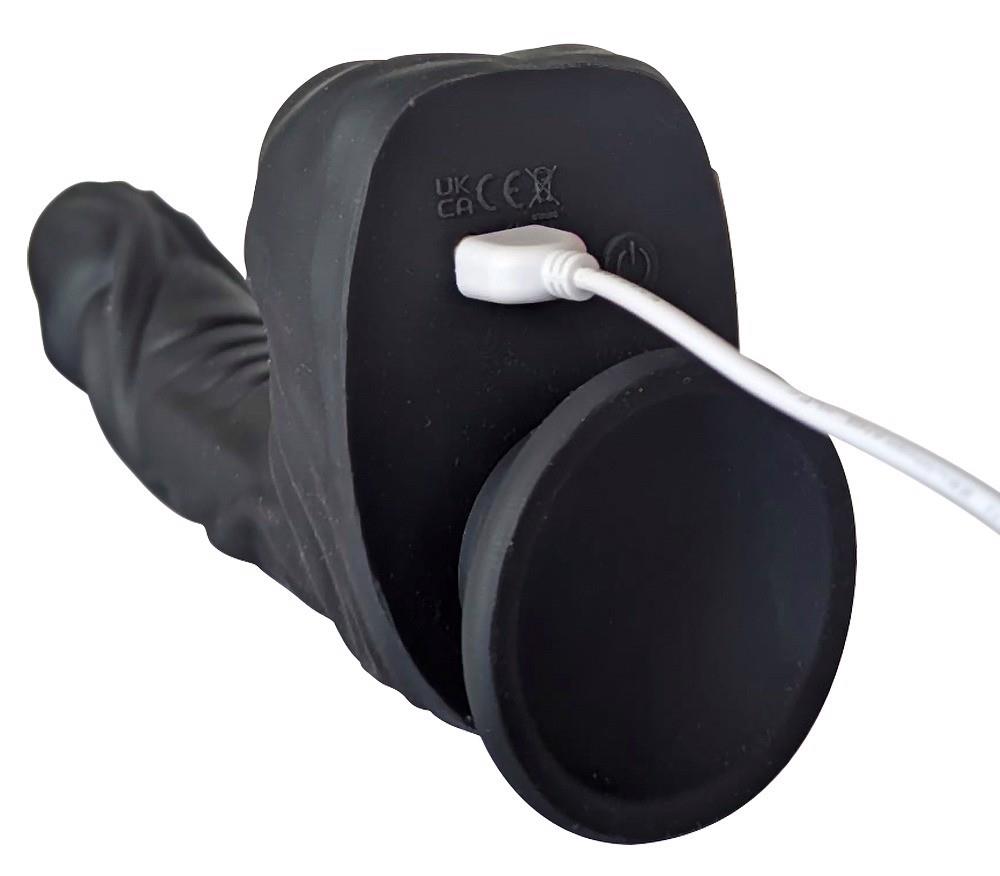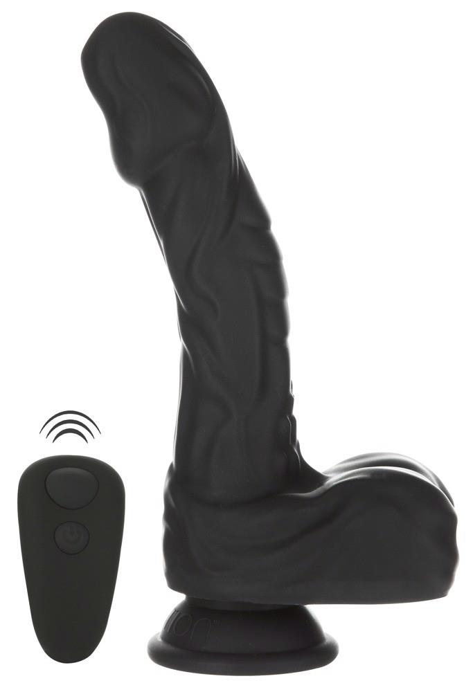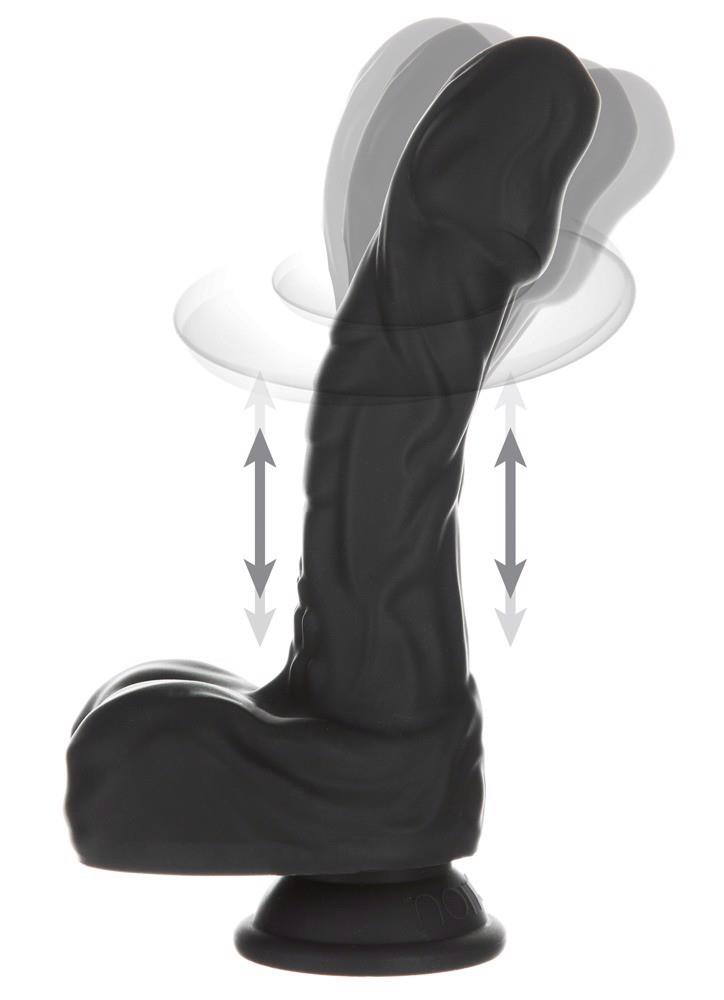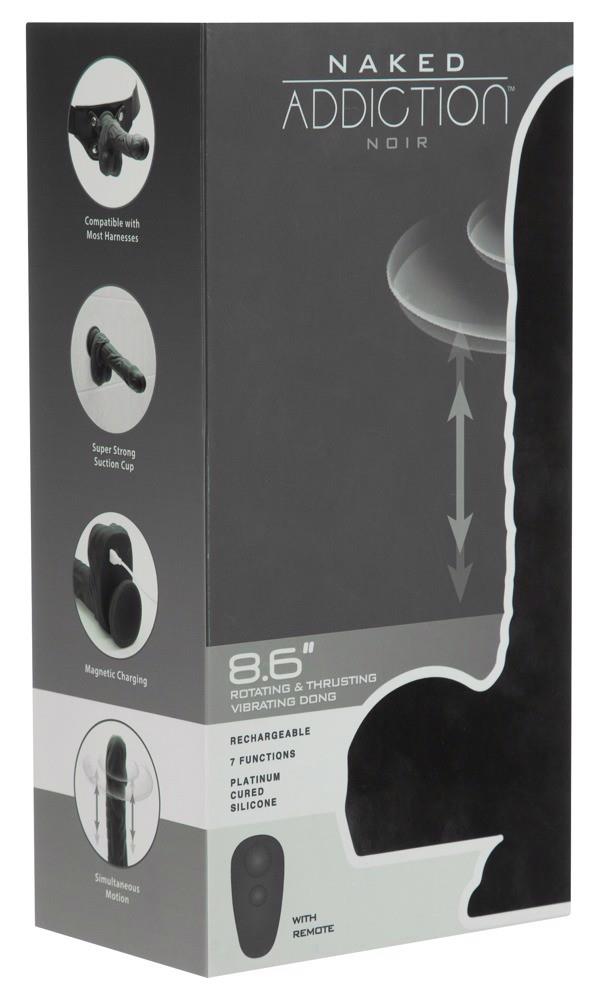 Flexible thrusting vibrator 8.6″ Rotating & Thrusting Vibrating Dong with rotating tip from Naked Addiction. In a lifelike penis look with fine veining and bulging glans. With suction base under the grippy testicles that sticks firmly and securely to any smooth surface for hands-free pleasure. This means the vibrator is also compatible with strap-ons and urinals.