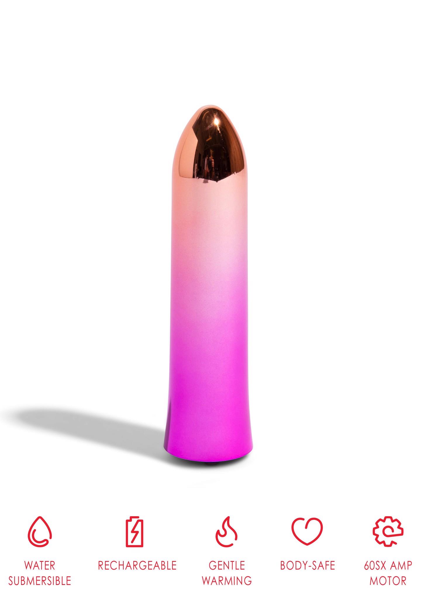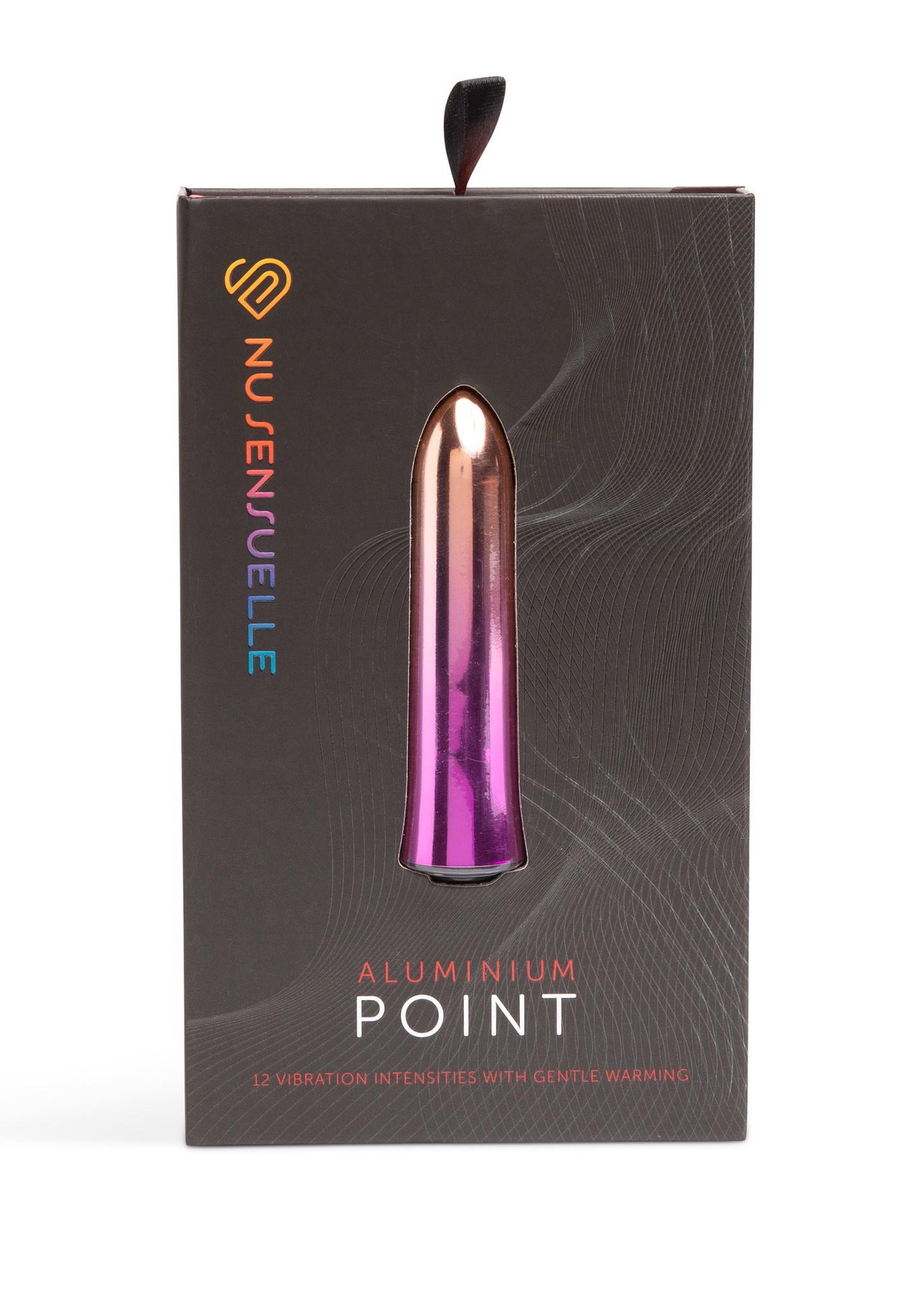 The Point, this Aluminium vibe is more than meets the eye. Beneath its minimalistic shape, non-dampening aluminium exterior lies the bullet’s true beauty— 12 extraordinarily intense vibration speeds all produced by our 60SX AMP proprietary motor. Not only does the Aluminium Point offer vibrations that will rock your world, but it’s also programmed with a gentle warming feature that can be controlled independently of the bullet’s motor. The first product to combine aluminium and heat, you won’t find another bullet quite like the Aluminium Point!