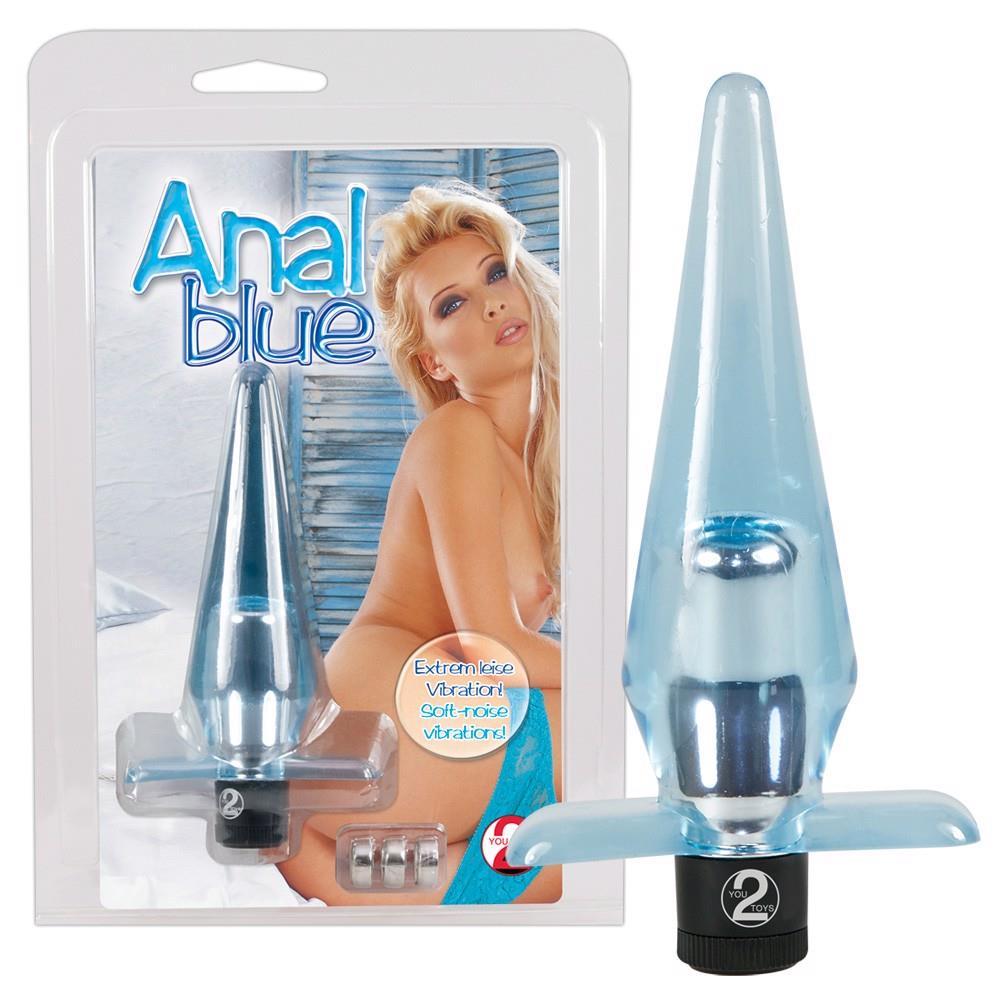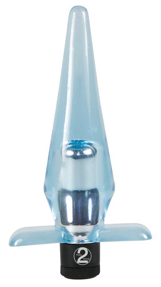 Niebiesko-przezroczyste wibro “wiązka radości” w delikatnej konstrukcji analnej. 11 cm długości, średnica 1 do 3 cm. Materiał: TPE. Baterie z ogniwami guzikowymi są dołączone!