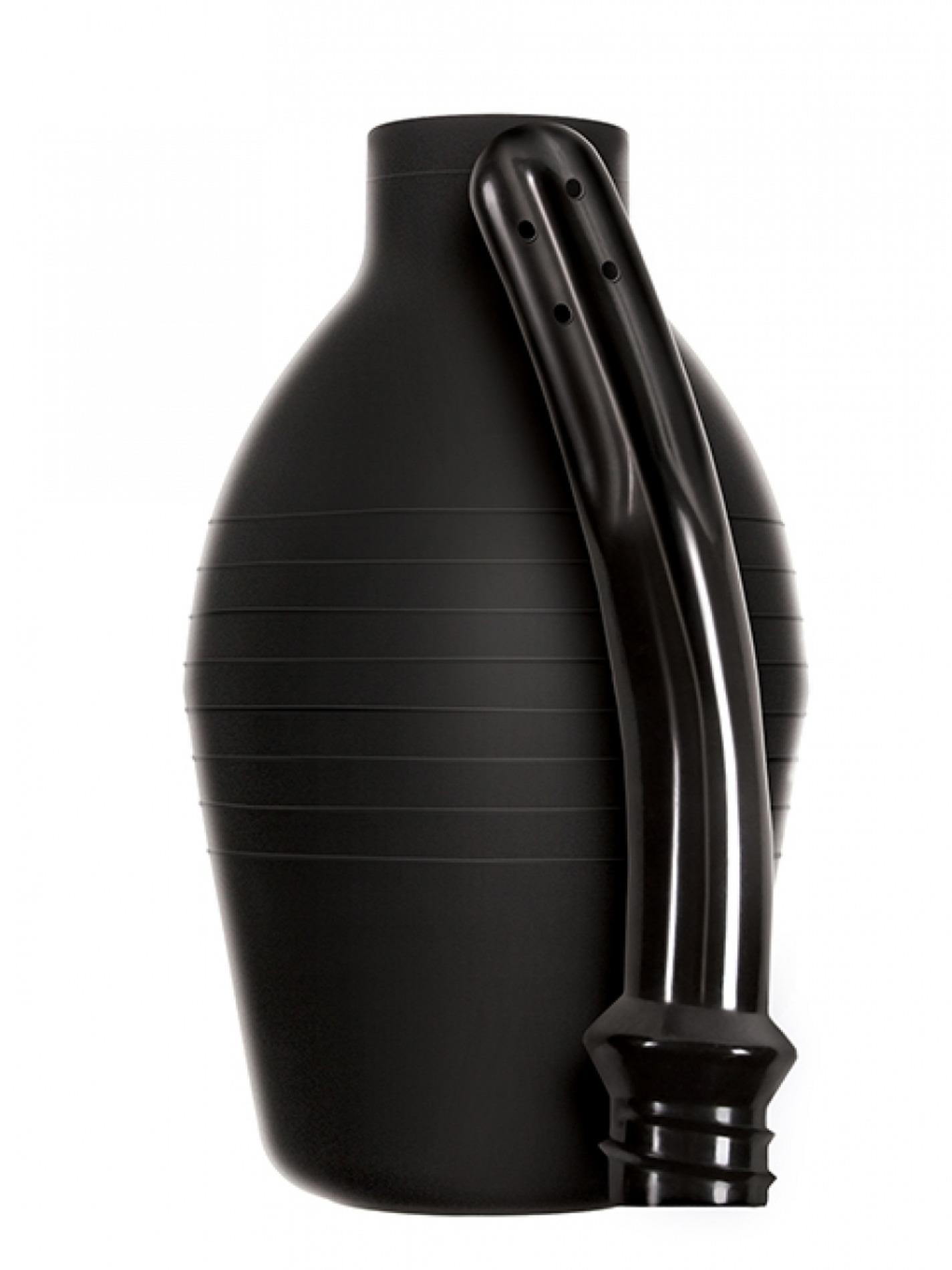 Lewatywa wykonana z PVC z pompką i plastikową wymienną dyszą.