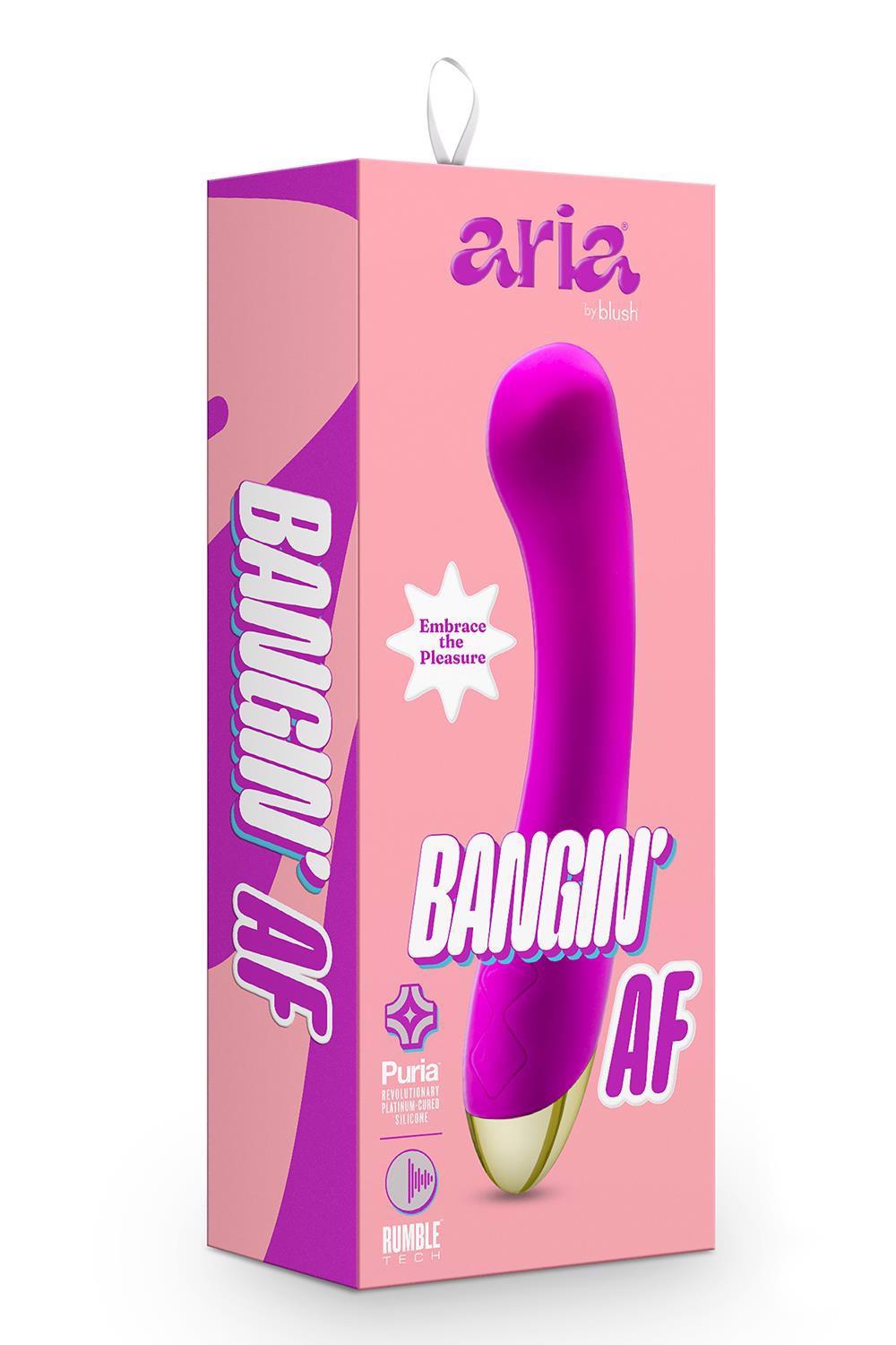 Beautiful and powerful, meet the Aria Bangin’ AF. It has 10 powerful vibrating functions, including 5 steady speeds and 5 unique patterns using the powerful Rumble Tech™ motor. Bangin’ AF is rated IPX7 submersible waterproof, making it perfect for bath and shower fun and easy to clean. It has A curve along its body, making it perfect for G spot stimulation. Bangin’ AF also is USB rechargeable through Magna Charge™, cable included! Ultrasilk® smooth and made using body-safe Puria™ platinum-cured silicone, it’s free of phthalates, paraffins, latex, and fragrances. Embrace the power of Aria. Rumble Tech deep rumbly vibrations10 Unique vibrating functionsPuria™ siliconeEnveloped in satin smooth Ultrasilk®Magna charge USB rechargeable, 2 hour run timeIPX7 waterproofLength 7.25 inch / 18,4 cmInsertable length 5 inch / 12,7 cmWidth 1.25 inch / 3,2 cm
