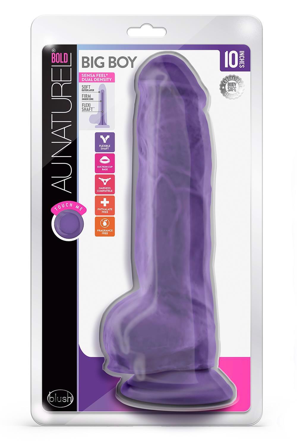 How BOLD are you feeling today? Handcrafted using our SENSA FEEL® dual density technology, the Au Naturel Bold Big Boy features a soft outer layer and rigid inner core that feels like the human body. The flexible spine makes this dildo posable, so it bends to your every curve. Every detail, from firmness to skin & vein texture, is carefully crafted for maximum lifelike effect—all for your pleasure. Big Boy delivers advanced girth and extra length, with a rounded, tapered head for easier insertion. Big Boy’s strong suction cup base will stick to almost any smooth surface and is harness compatible. X5 TPE on the inside and X5 Plus TPE on the outside, Au Naturel toys are phthalate-free, latex free, and easy to clean.Sensa Feel dual density and FlexiShaft designSoft, erect yet flexible shaftA blend of X5 and X5 Plus TPE for soft and realistic feelSturdy suction cup baseStrap on compatibleLength 10 inch / 25,4 cmInsertable length 7 inch / 17,7 cmWidth 2.5 inch / 6,3 cmLab tested and verified to contain no unsafe compoundsSilicone, water based, hybrid lube safe