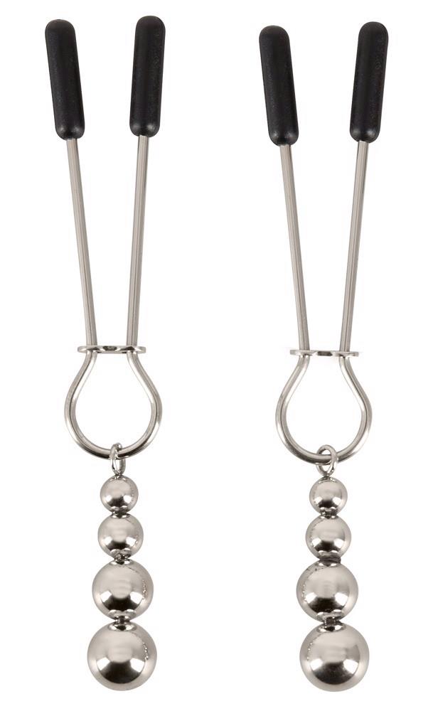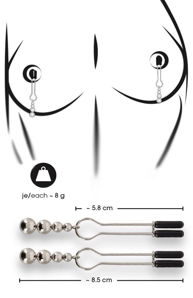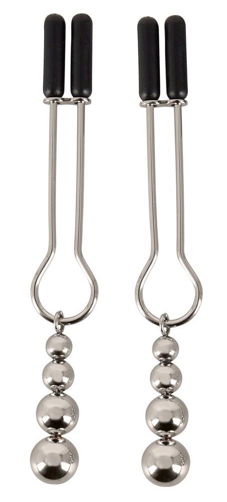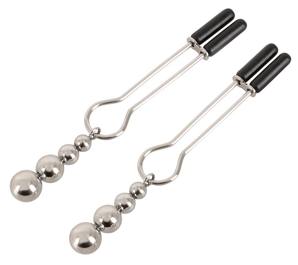 The Nipple Clamps from Bad Kitty hold the nipples tightly and adorn them with 4 decorative beads. The pressure of the nipple clamps can be adjusted individually with the sliding rings. The soft covers ensure a pleasant wearing comfort. 1 pair.