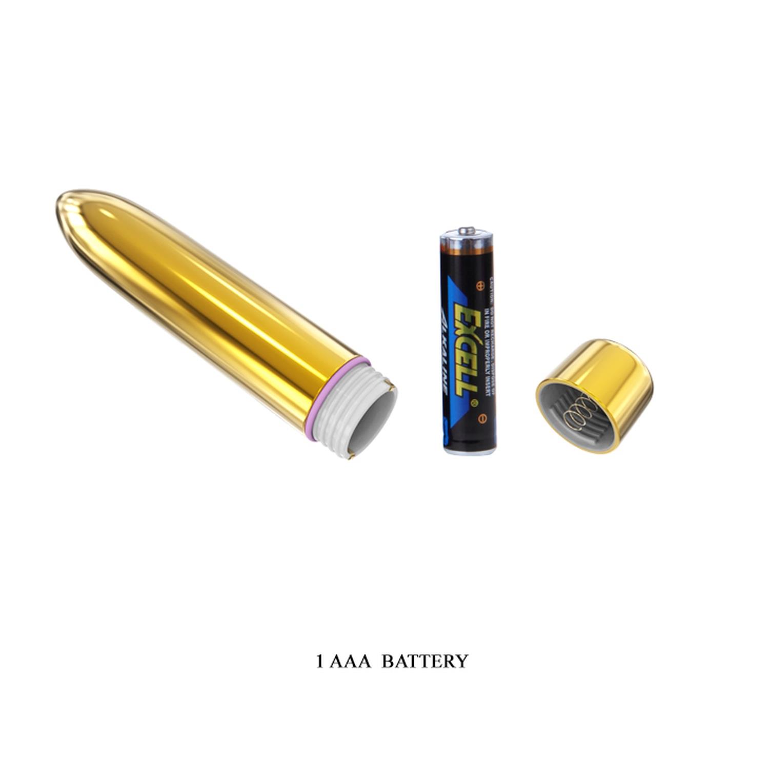 Ten mały, ale potężny wibrator o gładkim, eleganckim złotym wykończeniu zawiera intensywnie wibrujący silnik, który ma 10 wzorców prędkości, które można łatwo kontrolować za pomocą przycisku.