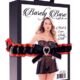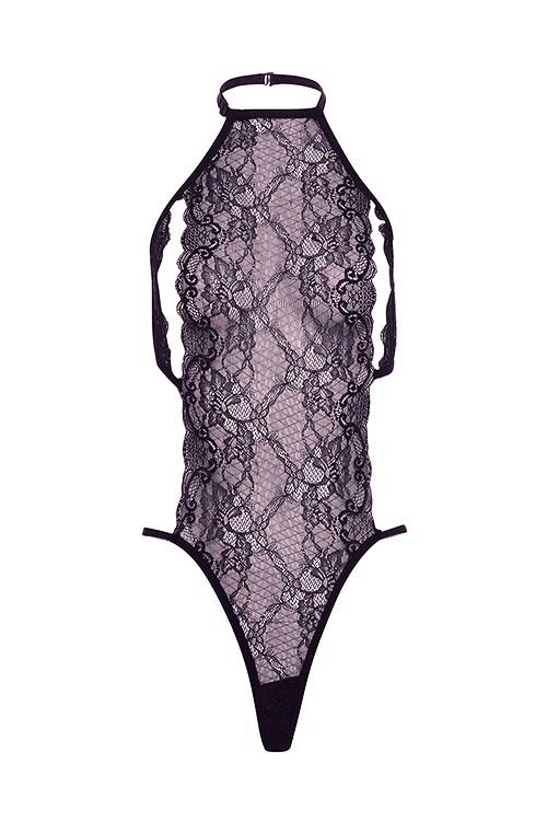 A dramatic one-piece that embraces the chest with black lace, leaving the side body exposed with elegant bands that swoop back high on the hip to accentuates curves. The gothic high neck style teases the imagination as attention flows to the scalloped edges that hint at a sexy reveal.A gift from Barely Bare The lingerie is packed in a stylish black box with a card at the front that can be removed to turn the box into a nice gift box. In addition it comes with a removable black and red elastic leg garter that is adorned with a heart shaped jewel and a bow, which is a lovely way to make the gift box complete! A gift and USP from Barely Bare for all online and offline retailers and an eye catcher in any store.Pee-a-boo lace teddyHigh neck, open sides designOne size fits mostBody-hugging stretchy laceNo underwireAdjustable strapsOpen back designHand wash