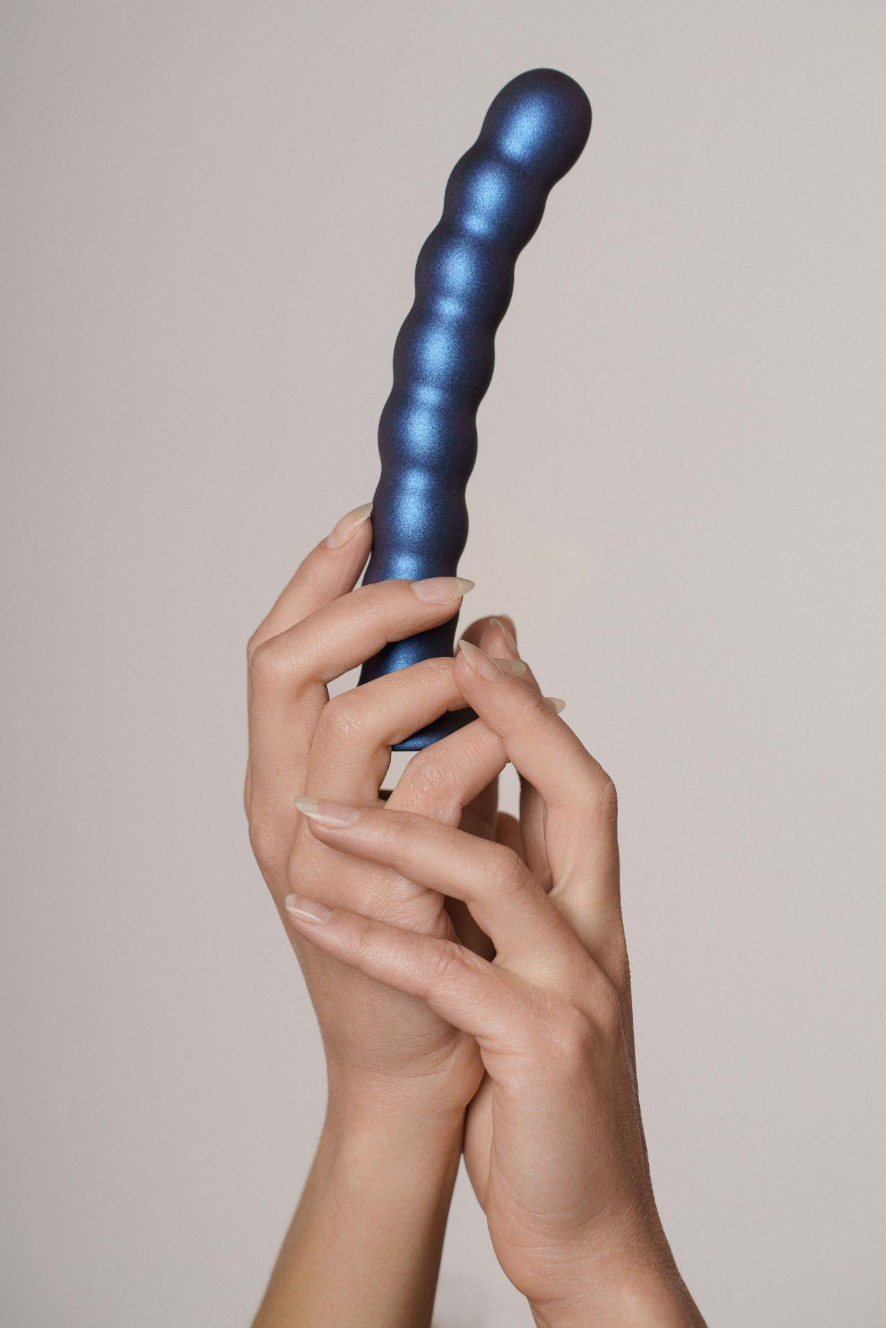 Klasa sama w sobie. Ultramiękkie, zakrzywione dildo z koralikami do stymulacji punktu G o długości 6,5 cali/16,5 cm, wykonane z silikonu, z mocną przyssawką i pięknym metalicznym kolorem. Najwyższej jakości dilda marki Ouch! wykonane z połączenia silikonu i płynnego silikonu pozwolą ci odkrywać nowe rodzaje przyjemności zarówno podczas zabaw solo, w czasie seksu z partnerem lub partnerką albo podczas korzystania ze strapona. Dildo tworzy idealny zestaw w połączeniu z majtkami do strapona marki Ouch!