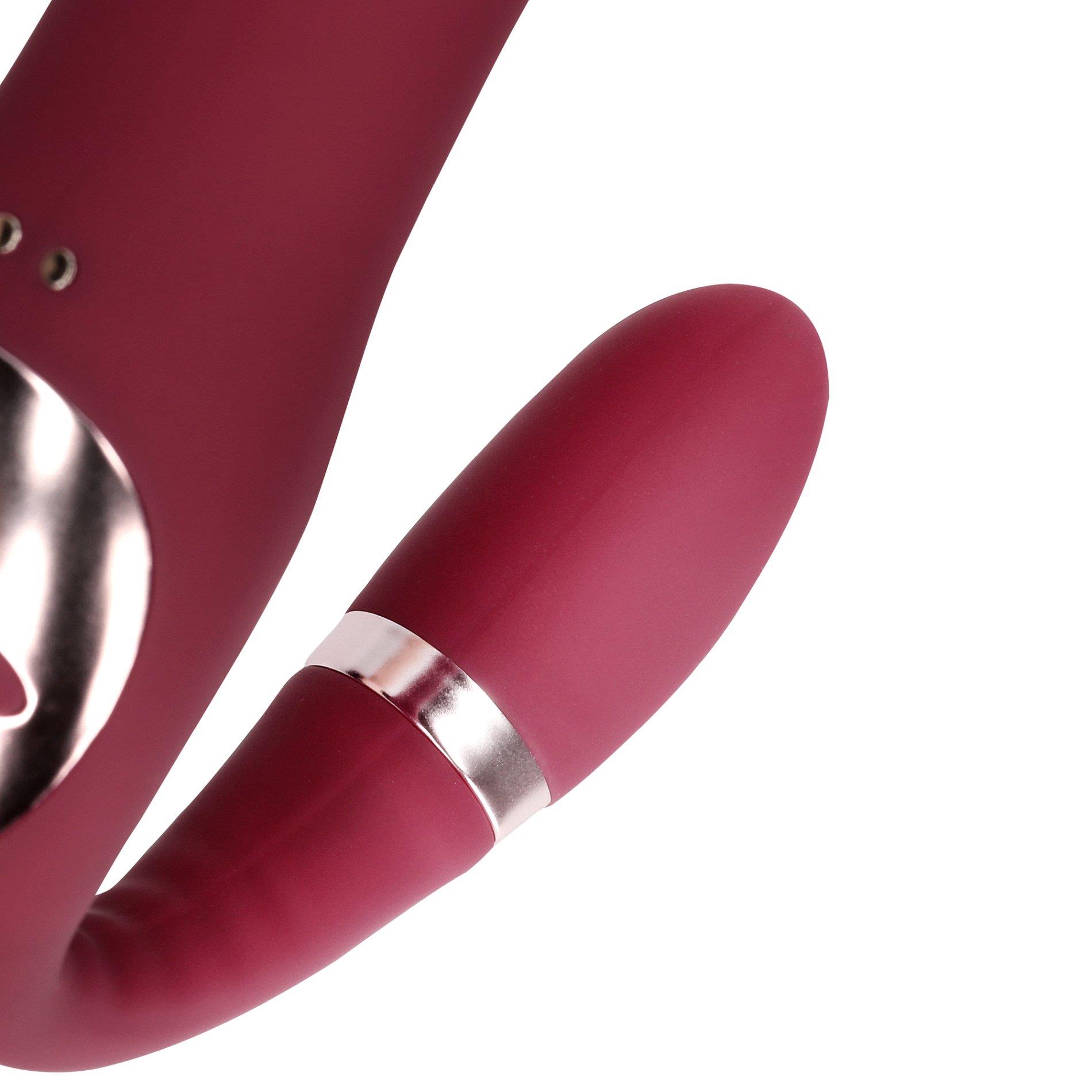 Ten zginany wibrujący strap-on został zaprojektowany, aby zapewnić wspólną przyjemność i potężne doznania dzięki dodatkowym funkcjom. Odkryj niekończące się chwile radości i zaskoczenia, odkrywając przyjemność z tym strap-onem Loveline.