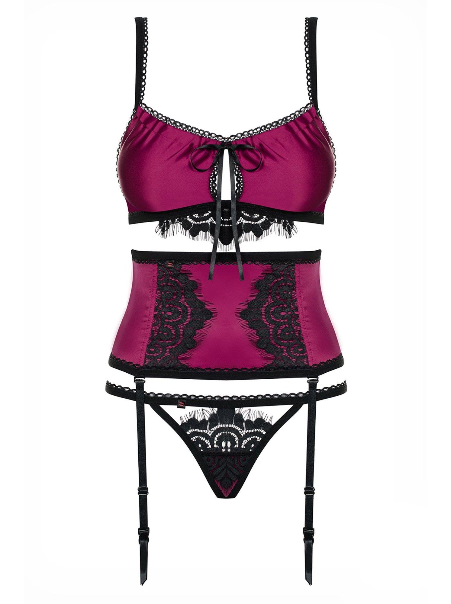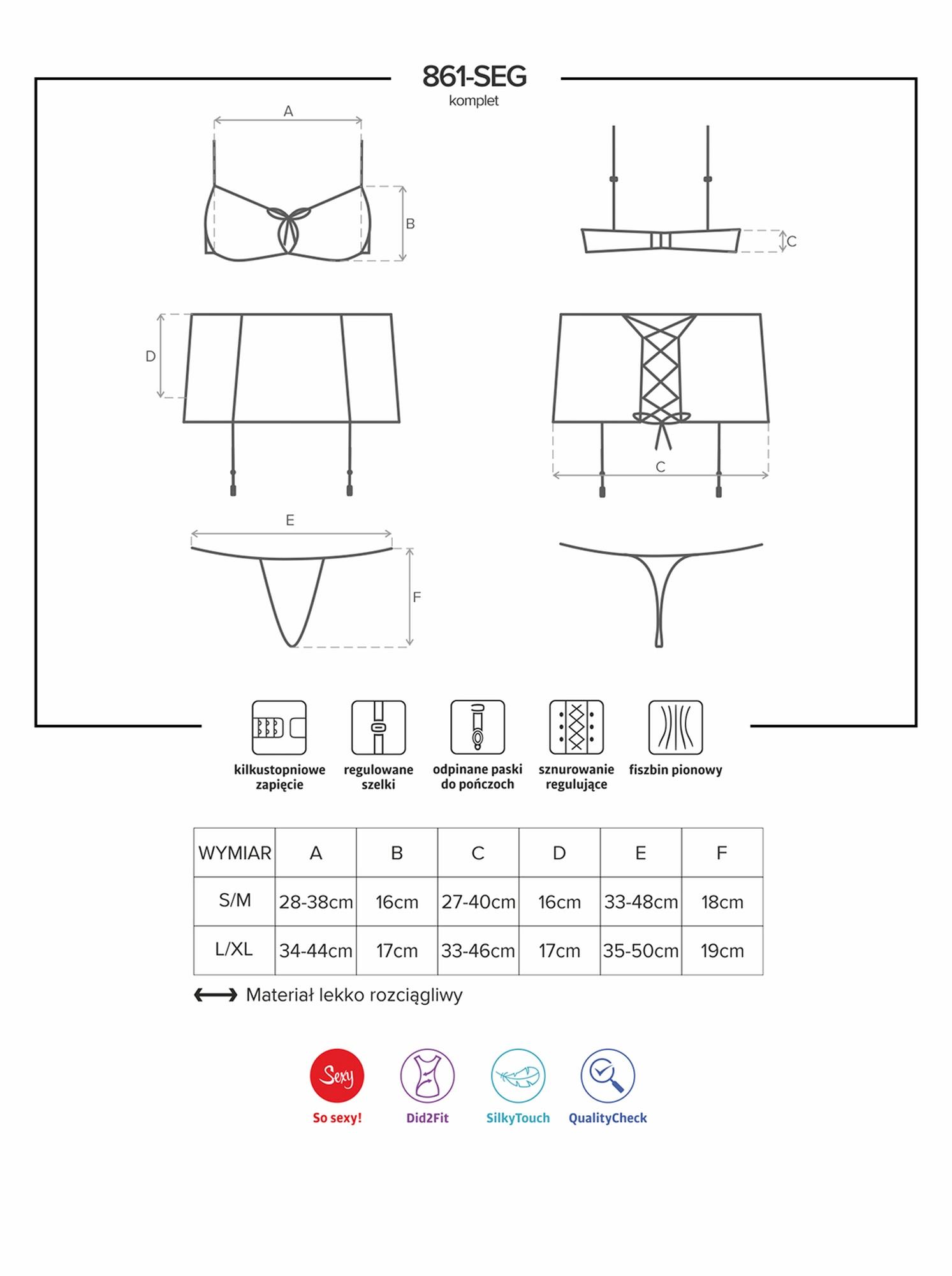 – komplet zawiera biustonosz, pas do pończoch i stringi