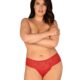 – delikatna, czerwona koronka o kwiecistym wzorze