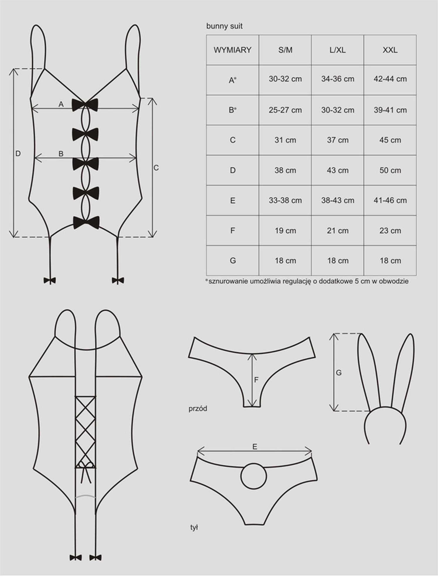 – w komplecie: gorset, seksowne majteczki z ogonkiem, uszy i pończochy