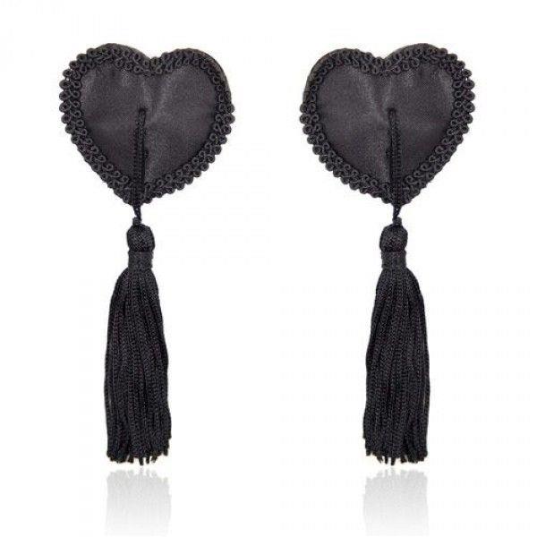 Urocze nakładki na biust w kształcie serca. Serca są wspaniale zdobione, a na środku przymocowano figlarny frędzelek. Nakładki są samoprzylepne, wielokrotnego użytku. W zestawie dwie sztuki.