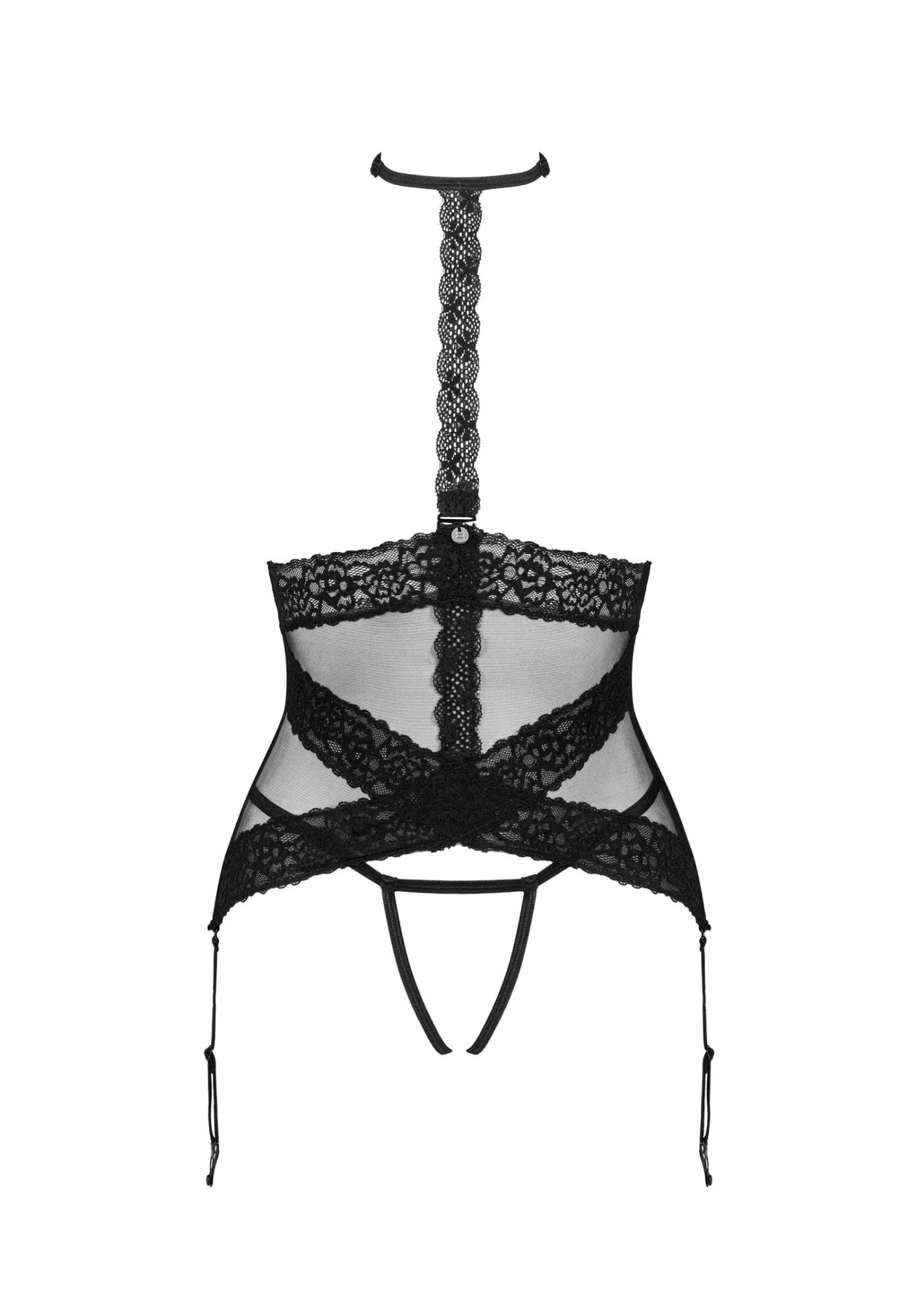 Już wiesz, że z tym gorsetem w sypialni będzie bardzo gorąco! Odsłaniający ciało krój i zmysłowe, geometryczne wzory potrafią zwrócić na siebie uwagę. Sznurowanie na plecach dodaje seksapilu, a otwarte stringi zachęcają do przyjemnych chwil z ukochaną osobą. Wyjątkowym elementem całości jest seksowny choker, który pięknie zdobi szyję i dekolt.
