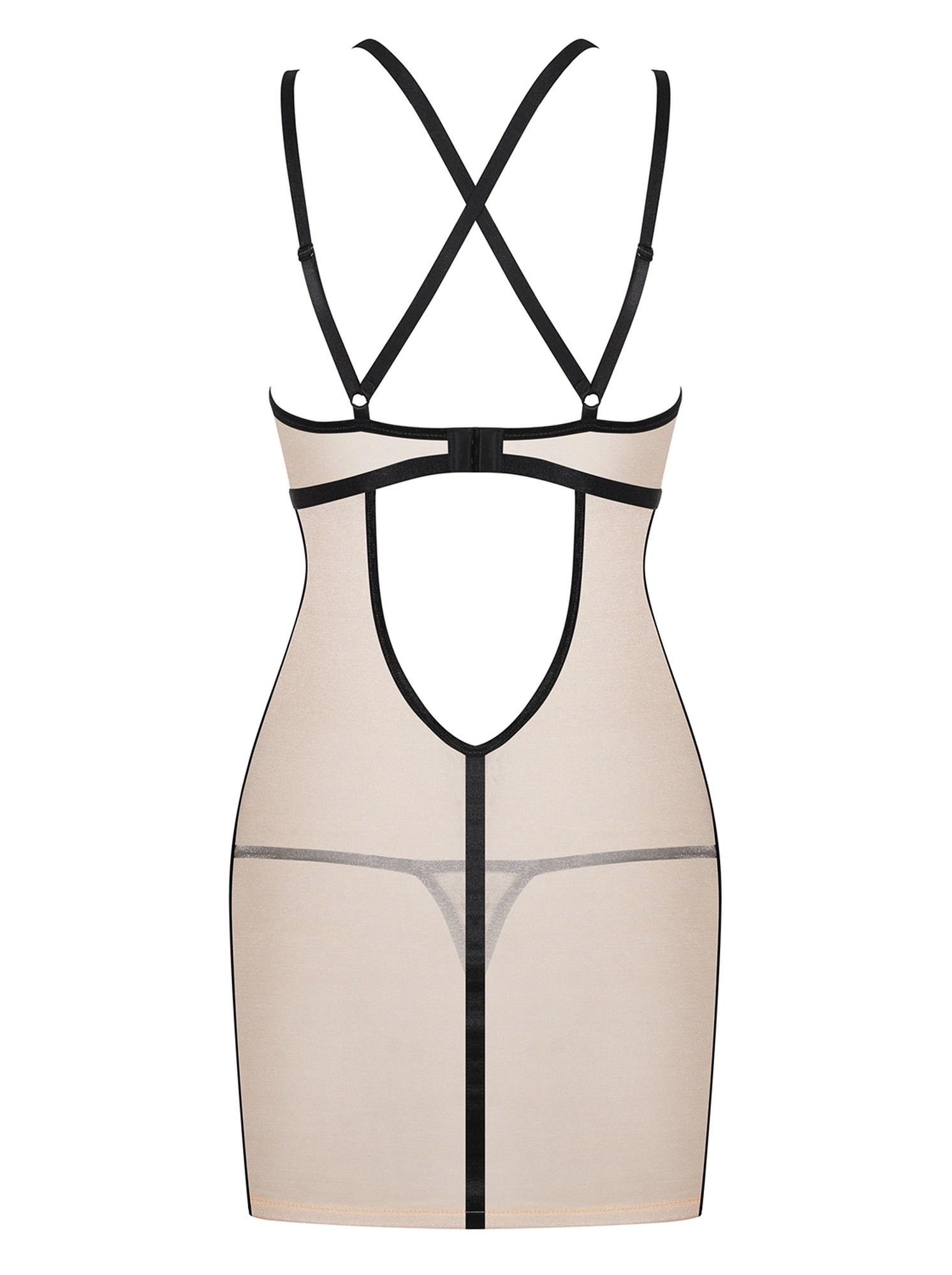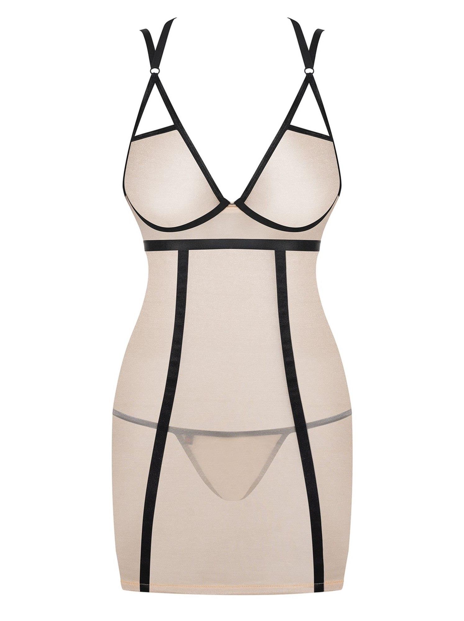 W swojej nowej koszulce poczujesz się jak w niebie! A Ty będziesz jego boginią. Jednak diabeł tkwi w szczegółach. Ciekawa? Frywolnie prześwitujący materiał, wyjątkowo pięknie połyskująca złota nić, intrygująca kombinacja paseczków i cielisty kolor. Wyobraź sobie poranek, gdy budzisz się z tą koszulką na sobie…