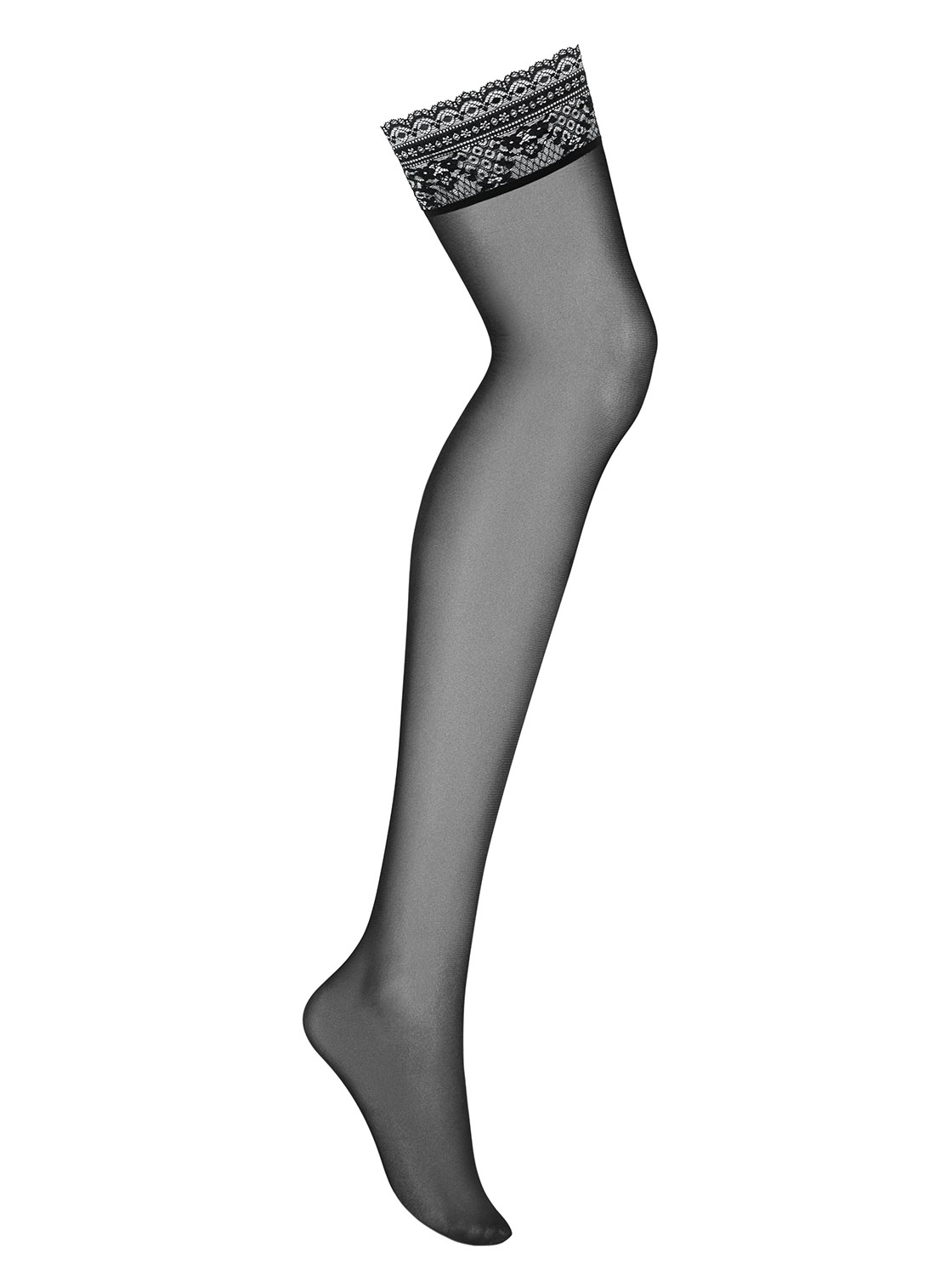 – czarne pończochy zdobione szeroką, koronkową aplikacją