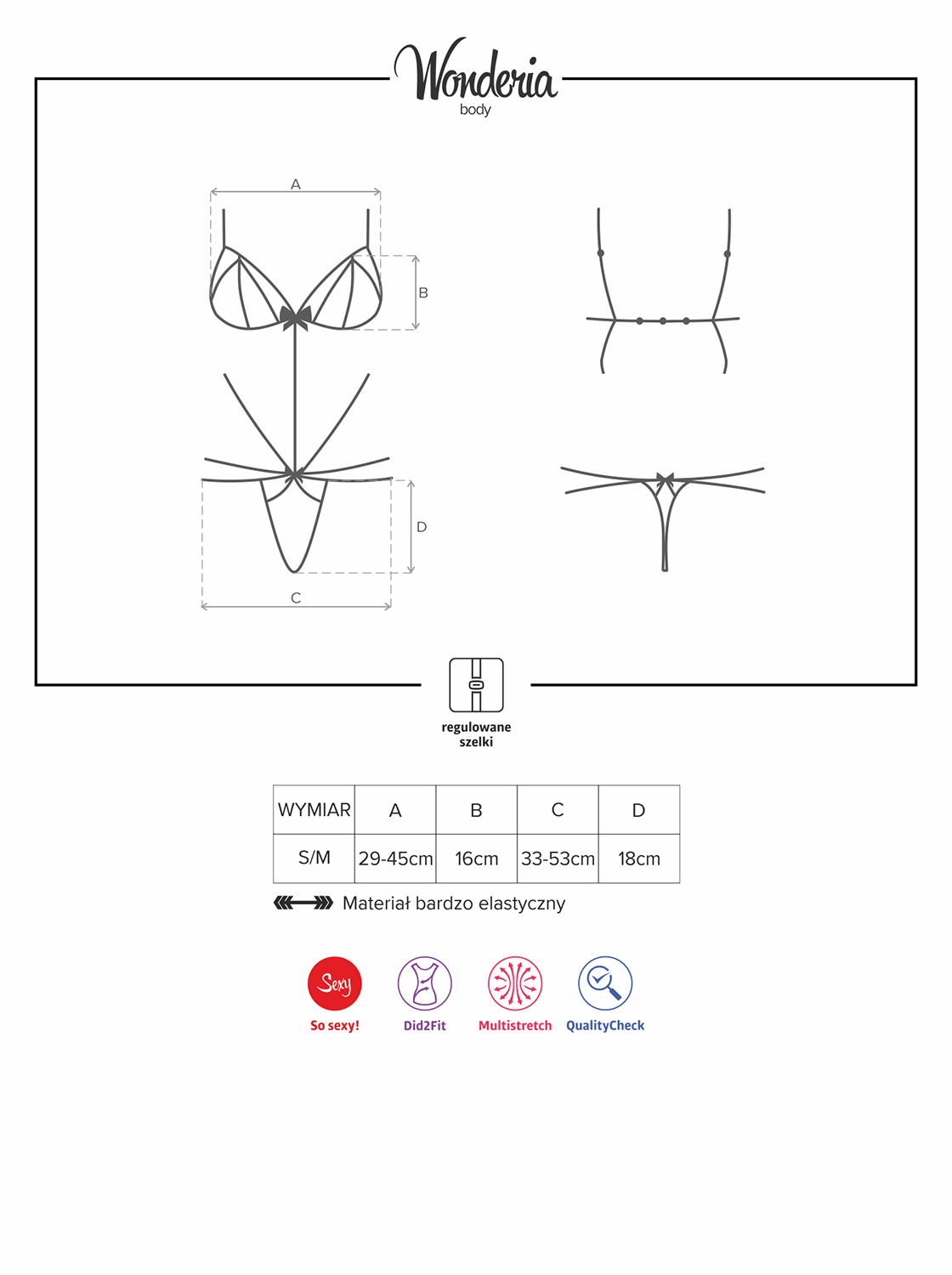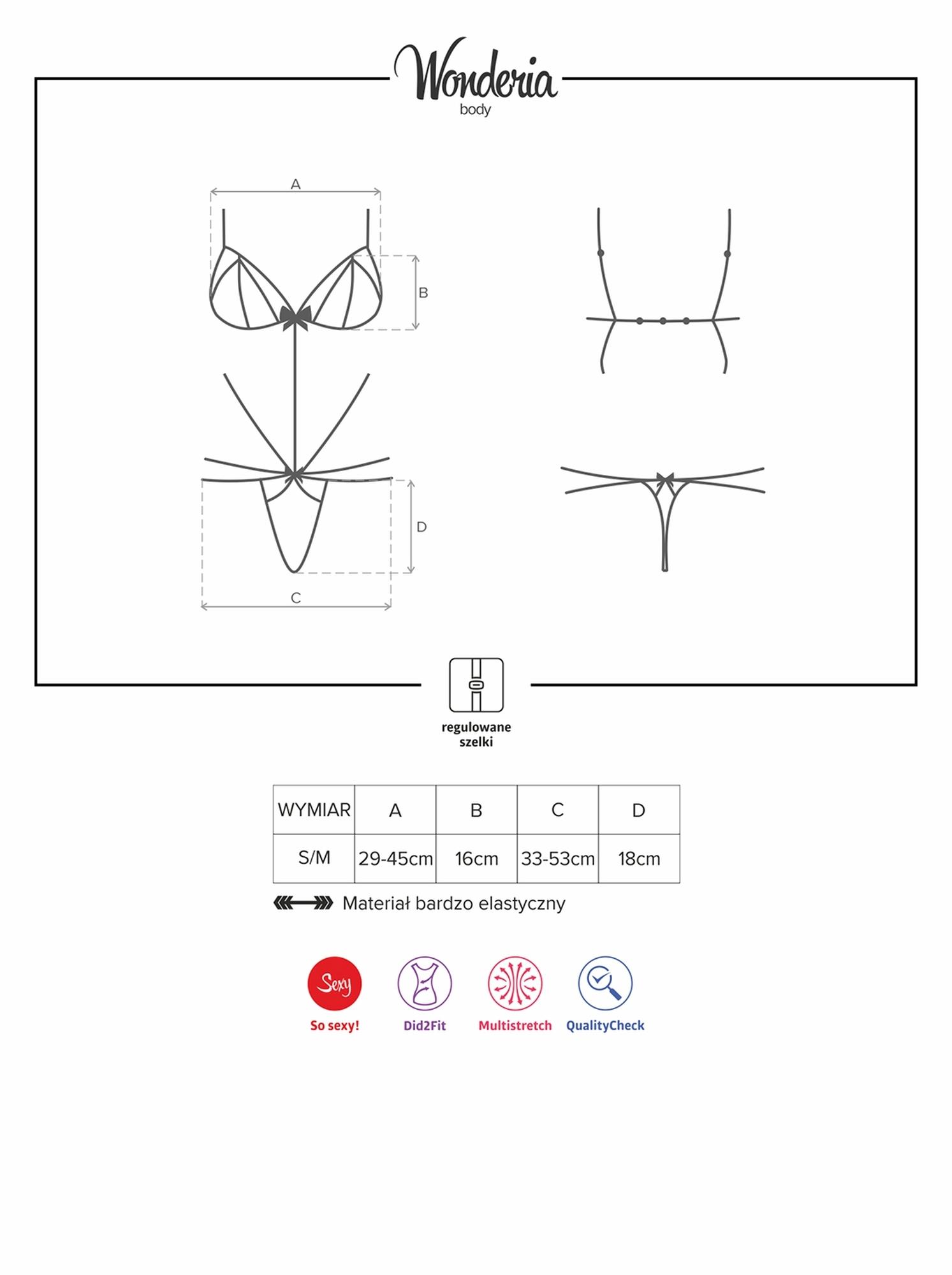 Wyobraź sobie chwilę, w której wchodzisz do Waszej sypialni mając na sobie kreację z seksownych paseczków i zmysłowej koronki. Widzisz jego podekscytowane spojrzenie? Wonderia pomoże Ci zrealizować ten plan! Tym razem totalnie go zaskoczysz. Oto super kuszące body w niepowtarzalnym fasonie! Rozpocznij tę noc wyjątkową rozgrzewką zmysłów.