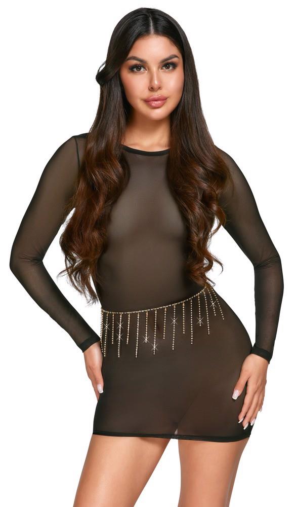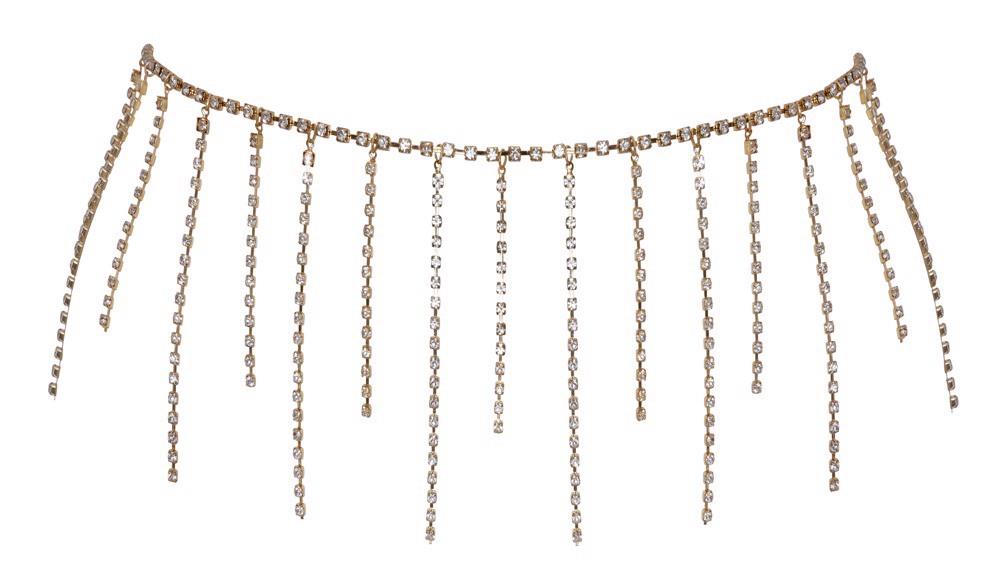 The gold-coloured stomach chain from Cottelli ACCESSOIRES has swaying rhinestone chains at the front and sides. The glamorous piece of jewellery for the waist can be adjusted with the snap hook. It can be worn on its own for a stylish and erotic look. The shimmering stomach chain can also be worn with swimwear or as a stylish belt with tight-fitting outfits.