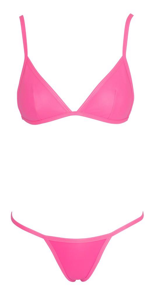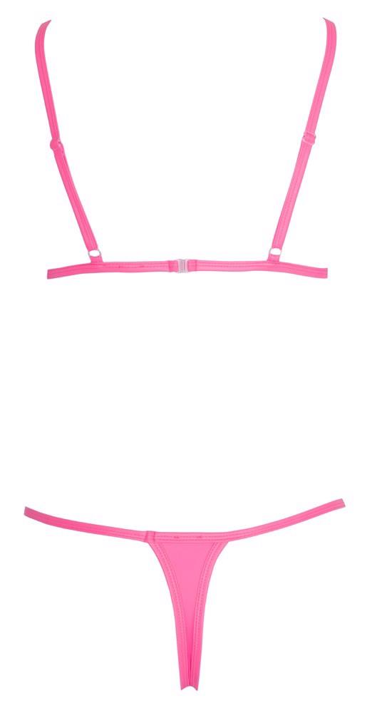 Bikini Cottelli LINGERIE w efektownym neonowym różowym matowym połysku. Biustonosz z wszytymi miseczkami i zapięciem na zatrzaski z tyłu, ramiączka regulowane dla idealnego dopasowania. Klasyczne stringi rio z wąskim paskiem w talii. Miękki, elastyczny materiał zapewnia idealne dopasowanie i wysoki komfort noszenia podczas kąpieli i opalania.