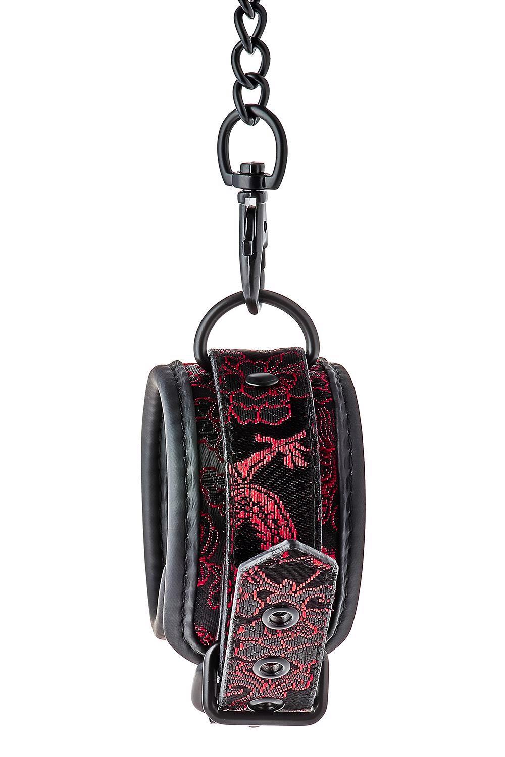 Mankiety w połączeniu z czarnym niklowanym łańcuchem, są wyłożone miękkim, a jednocześnie wytrzymałym materiałem z neoprenu, co zapewnia seksowną i komfortową zabawę.