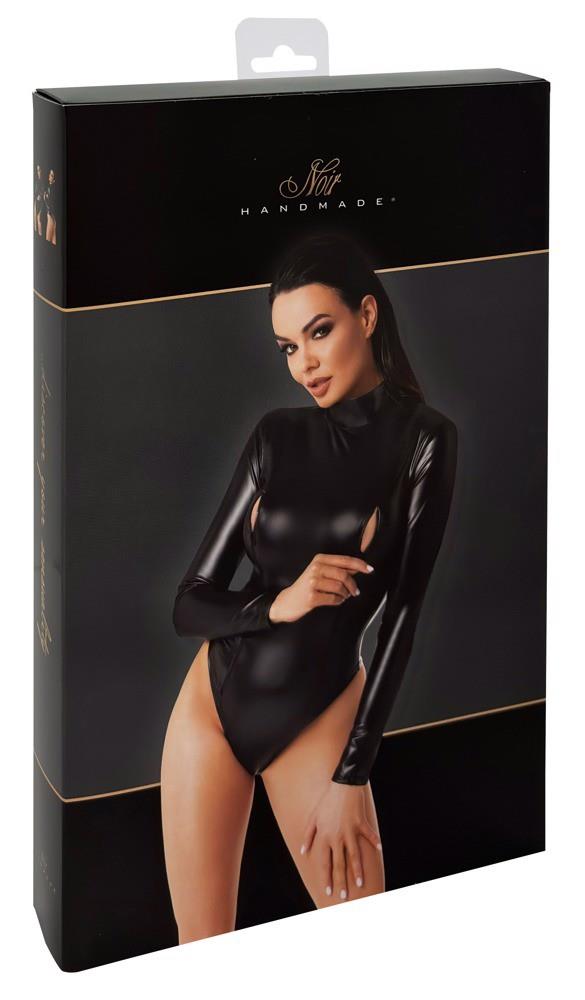Czarne body bez krocza z długim rękawem od Cottelli LINGERIE o modnym matowym wyglądzie. Odsłaniający styl z otwartym przodem, który jest utrzymywany razem przez pierścienie i modnie zebrany na brzuchu. Całkowicie otwarte w kroku – aż do pośladków. Gładki, elastyczny, modny materiał jest miękki i przylega do skóry. Dla maksymalnego komfortu w każdej pozycji.