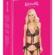 Wireless bra, suspender belt & string in a set from kissable. All pieces are made entirely out of delicate floral lace and they are soft and stretchy for a comfortable fit. Stylish bra with a hook fastener at the back and at the back of the neck. The suspender belt has a hook fastener at the back, the suspender straps can be adjusted. The seductive small string has two narrow stretchy straps that come together in the crotch area.