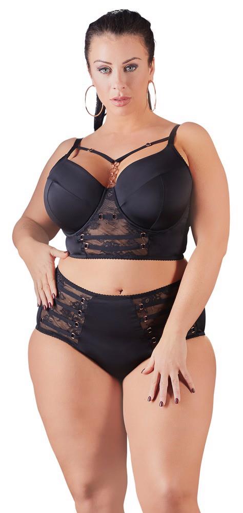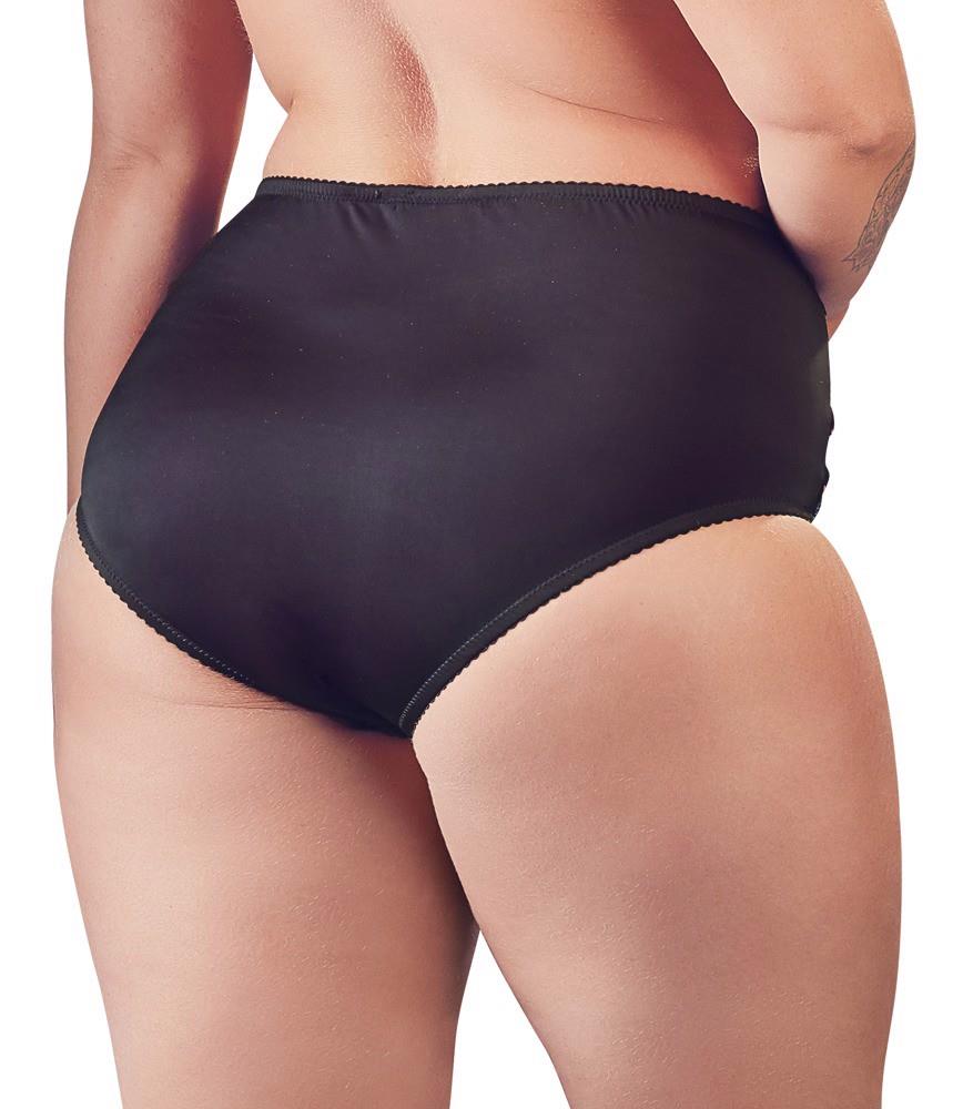 Czarne majtki z koronkowymi wstawkami z przodu i różowo-złotymi detalami pierścionków. Elastyczne, o szczególnie pięknym dopasowaniu.
