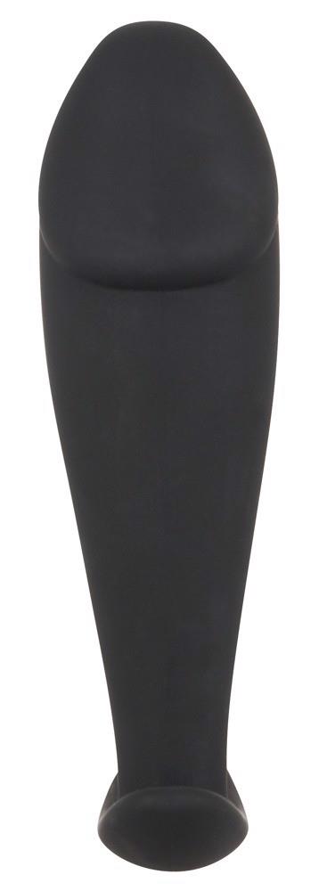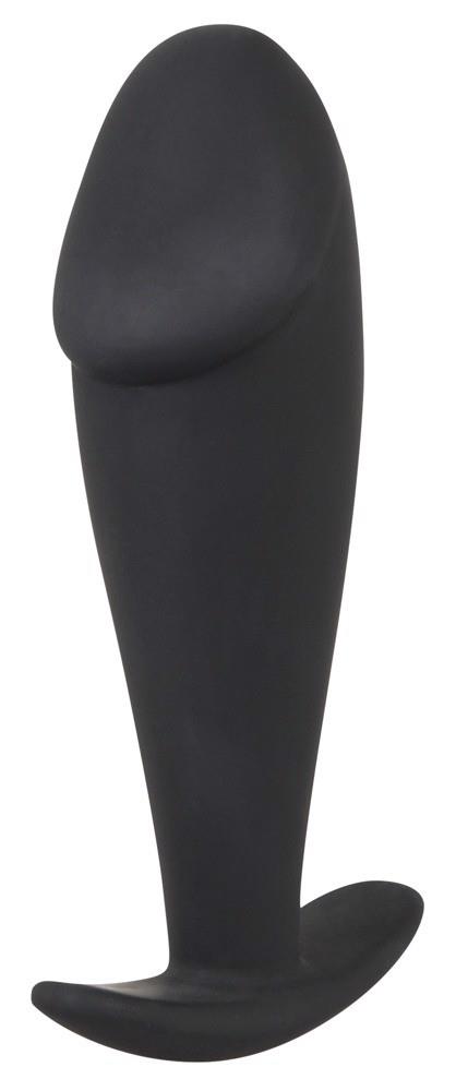 Czarna wtyczka analna ma na końcówce wskazany żołądź i jest zwężona w kierunku korka. Długość całkowita 10 cm, średnica 1,3-3 cm. Silikon z powłoką PU.