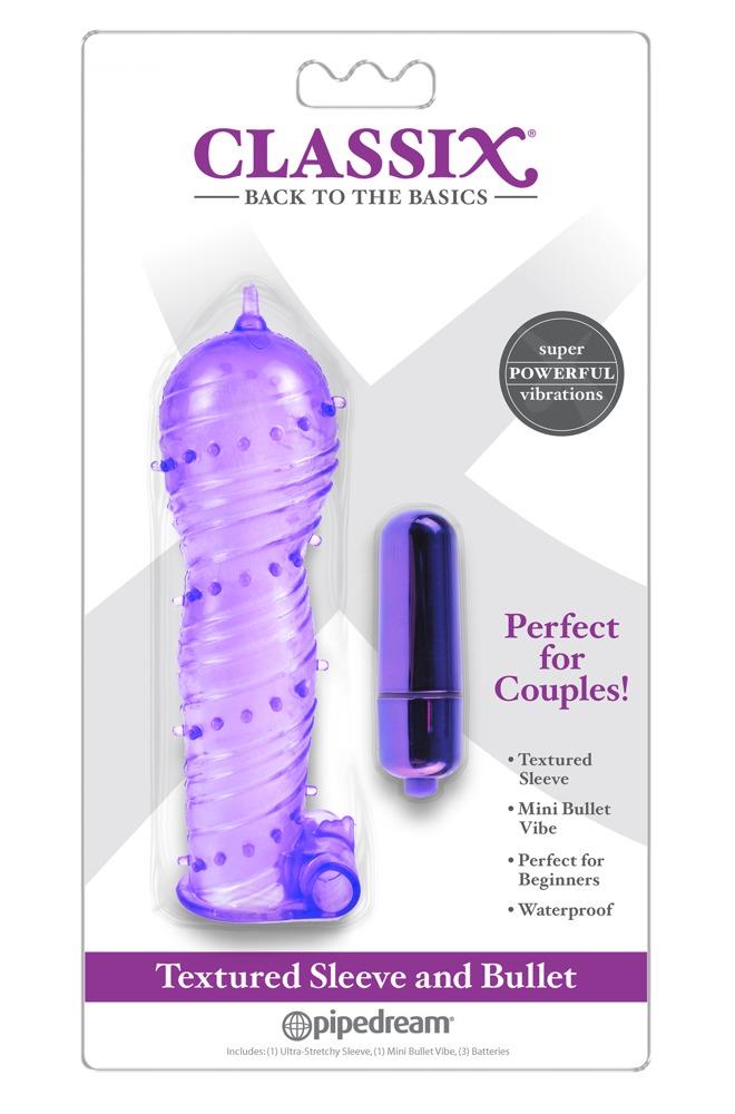 Sensually dotted and grooved sleeve that helps with stamina and provides extremely intense moments with a partner. The integrated vibro-bullet is waterproof and can pleasure either the clitoris or testicles. The vibro-bullet can be removed from the penis sleeve for even more fun and games. Includes batteries: 3 x LR44.