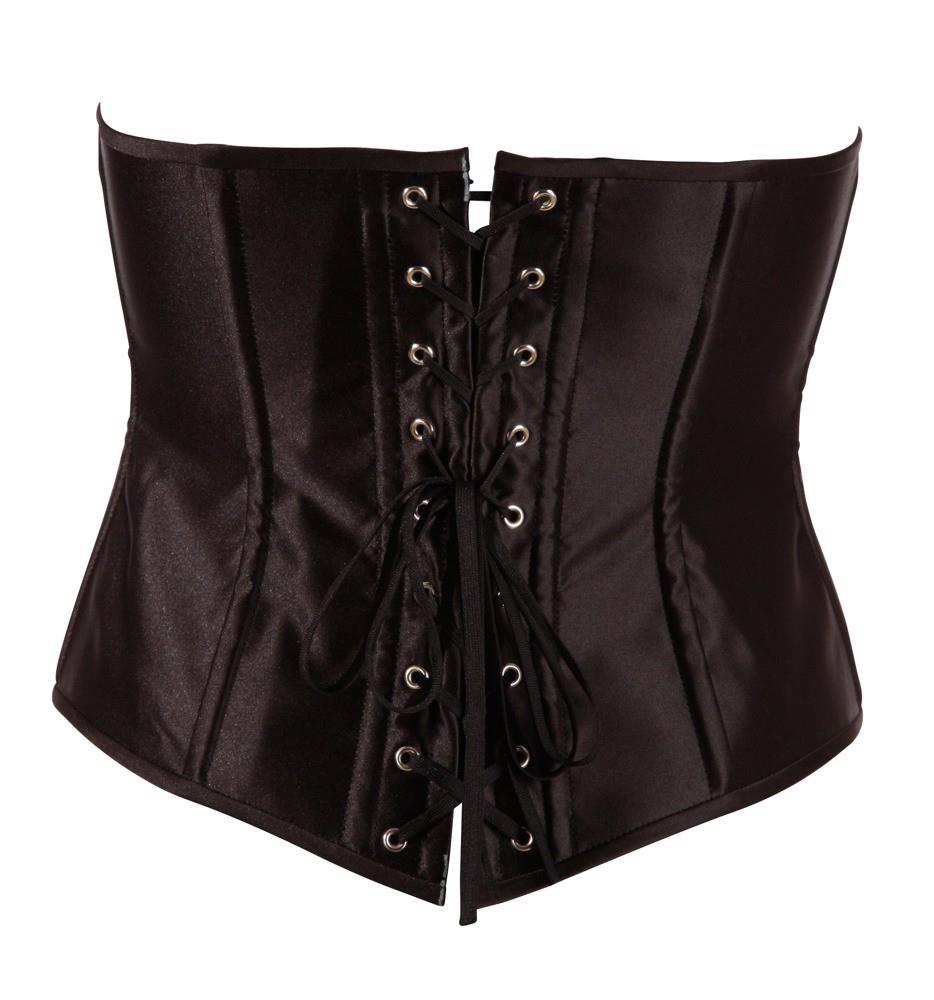 Gorset bez biustu z zapięciem na haftki z przodu i klasycznym ozdobnym sznurowaniem z tyłu. Kształtuje zapierającą dech w piersiach piękną talię z 6 prętami na stronę i może być łączona na wiele sposobów.