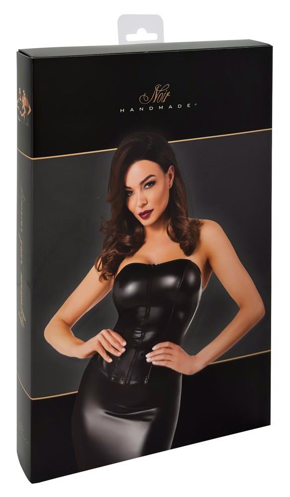 The emphasising top from Noir is in a tapered corset look. It is made out of trendy black power wet look material and it has a full-length zip down the front. It is soft and stretchy for an extremely comfortable fit. The adjustable straps can be removed.