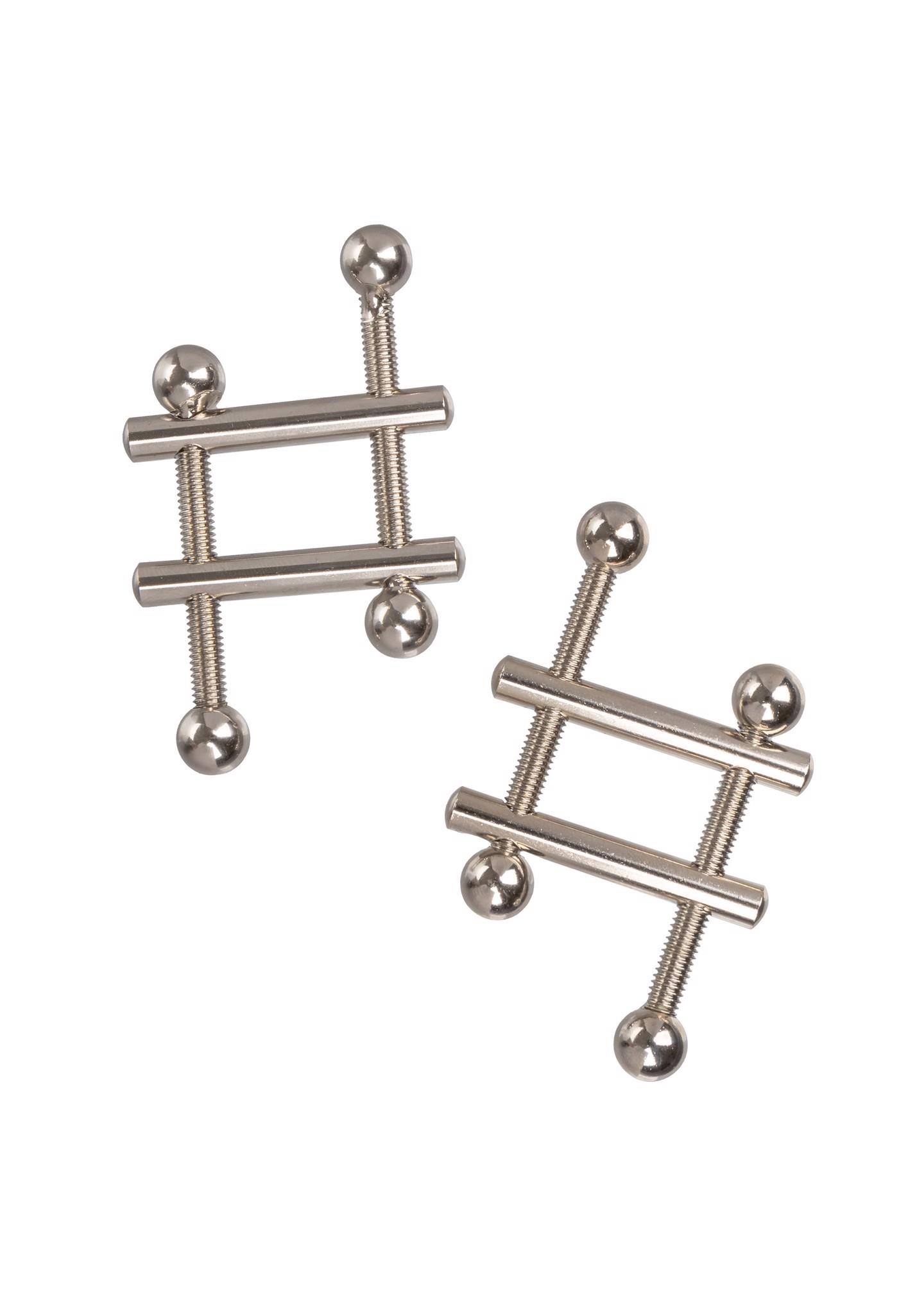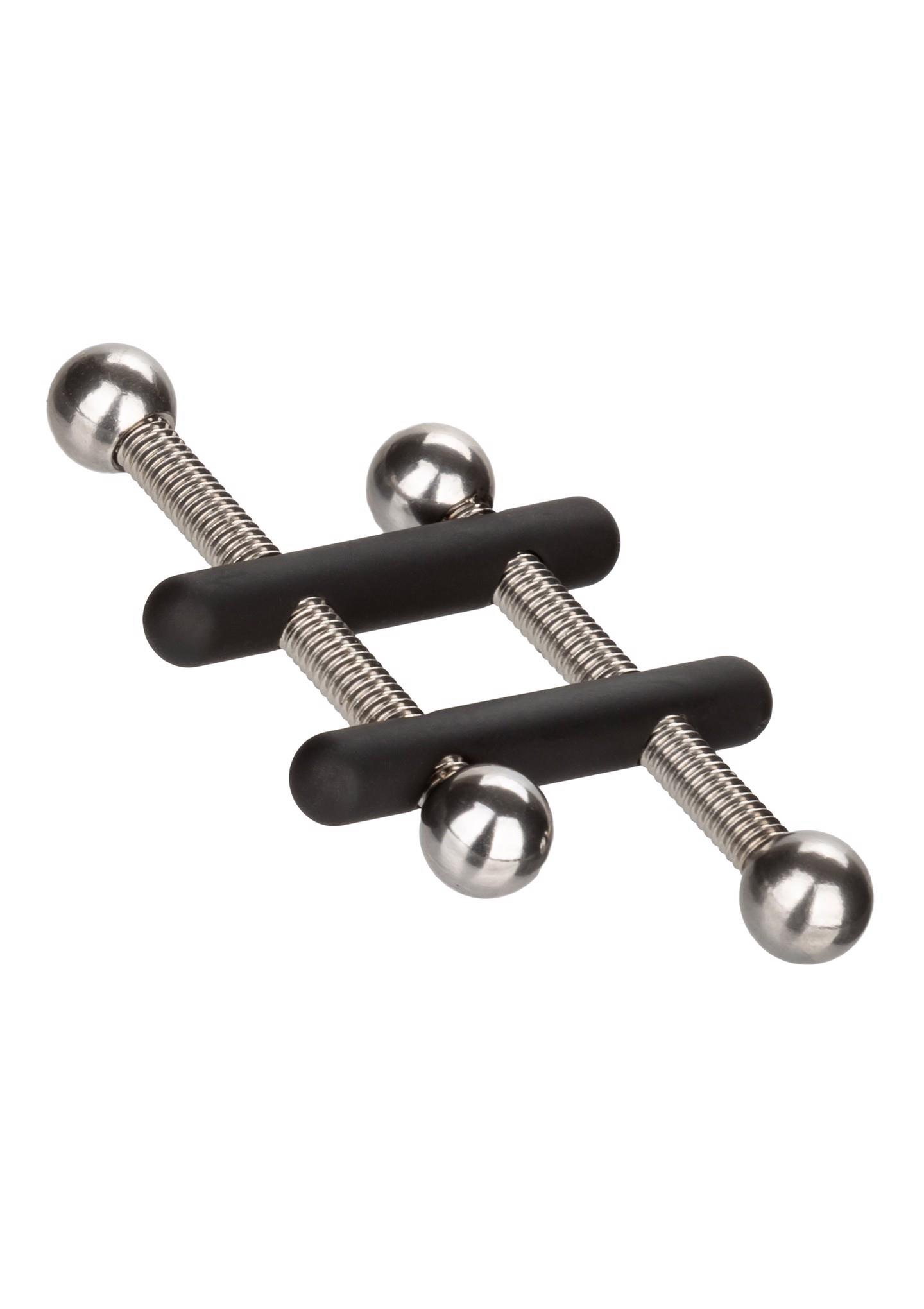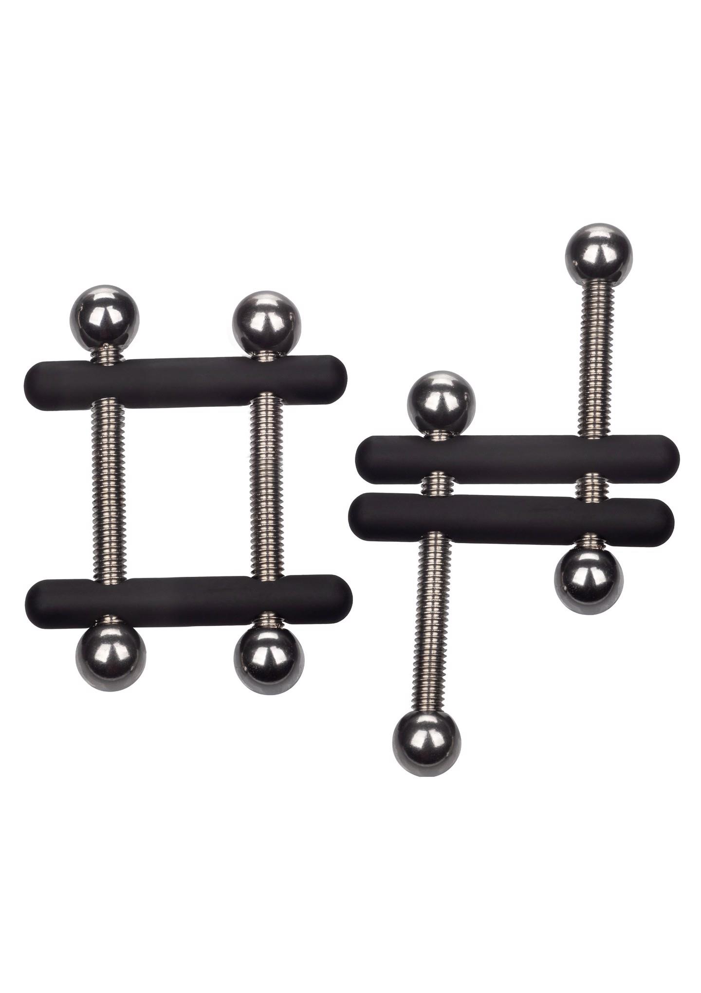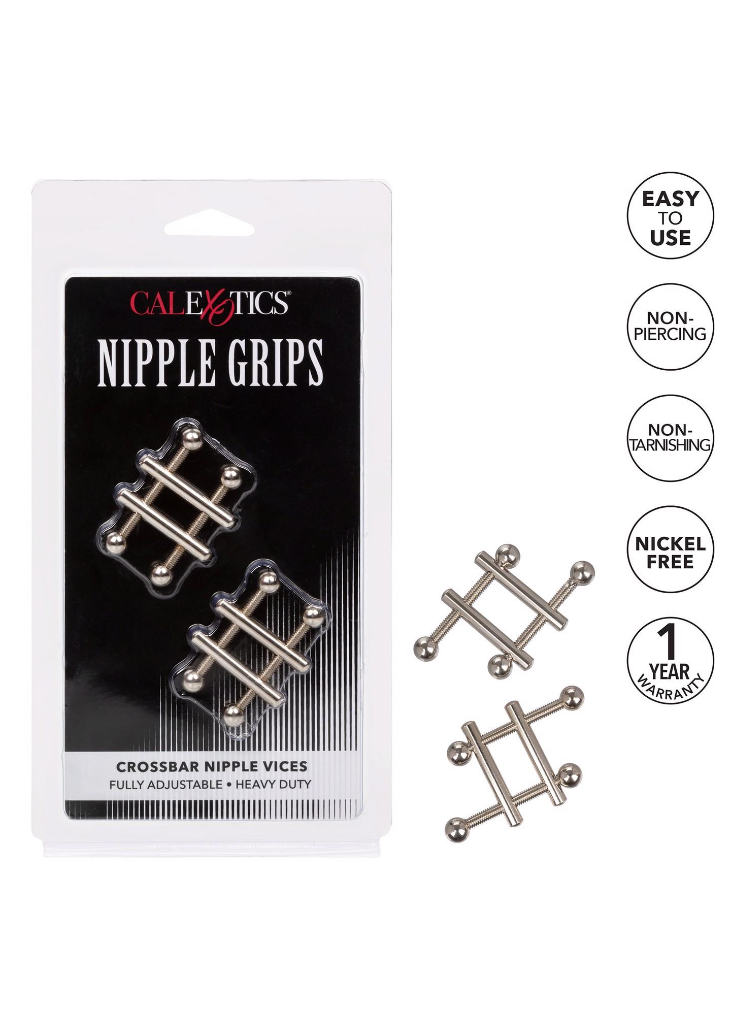 Push sensation to the next level and enjoy teasing nipple play with the Nipple Grips Power Grip Crossbar Nipple Vices. Explore elevated sensation with the 2 fully adjustable multi use clamps with a unique crossbar design. Clamp the naughty clasps to the nipple or anywhere on the body and enjoy every rush of pain and pleasure while the power grip cote holds tight.