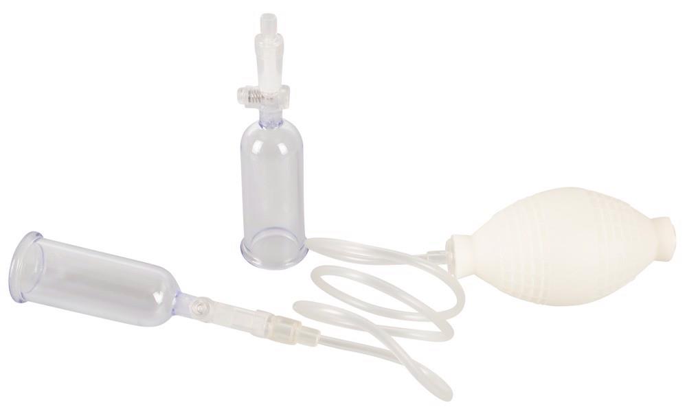 2 przezroczyste dzwony ssące (każdy o długości 6 cm, otwór średnica 2 cm) z regulatorem ciśnienia i poręczną pompką kulkową. Przyjemne podciśnienie w dzwonach ssących jest utrzymywane nawet po usunięciu rurki kuli pompującej.