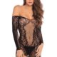 Simple, stretchy, long sleeve floral lace off- shoulder mini dress. This transparent lace shows off your curves and everything underneath. G-string not included. Click here for the René Rofé Size Chart