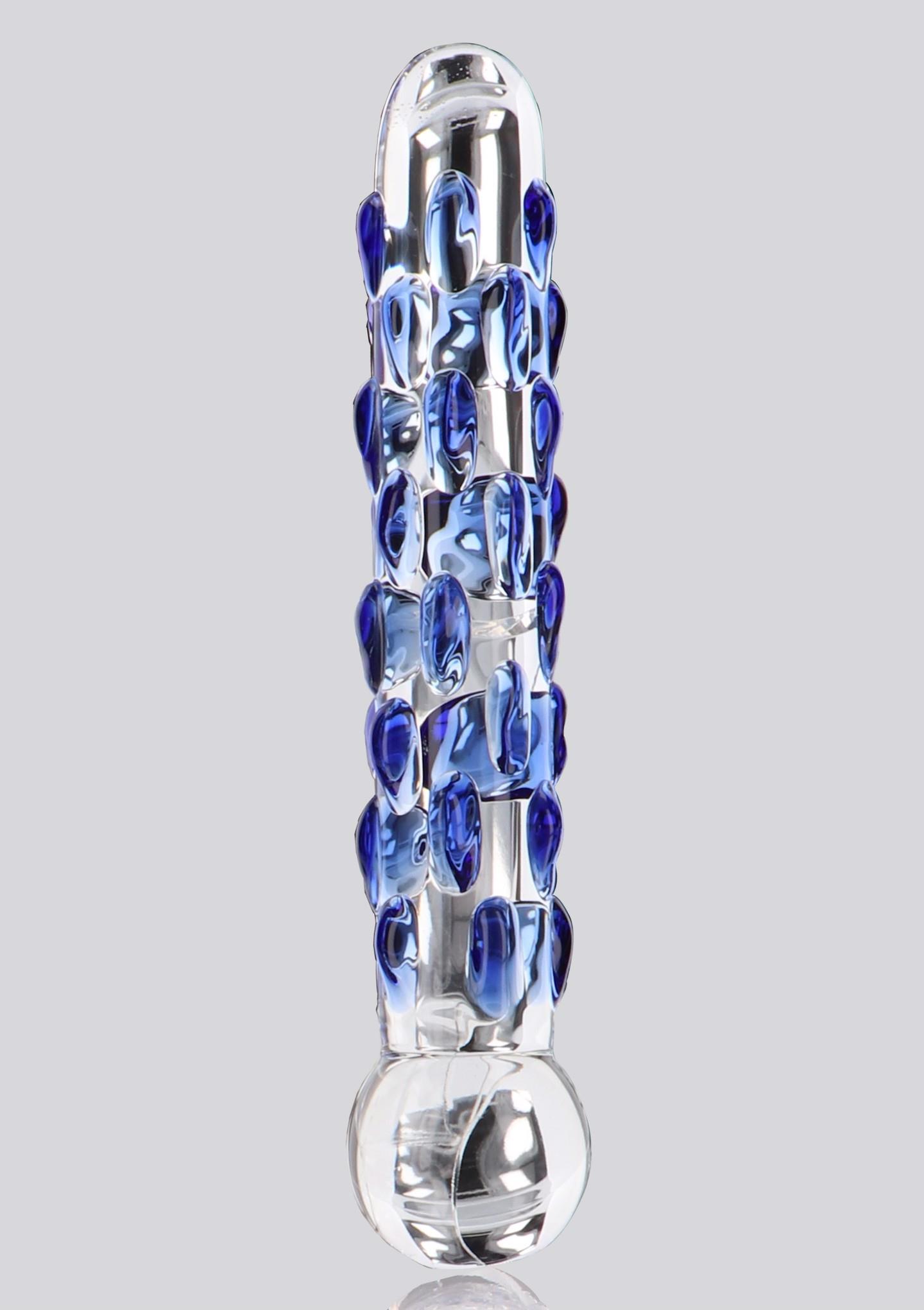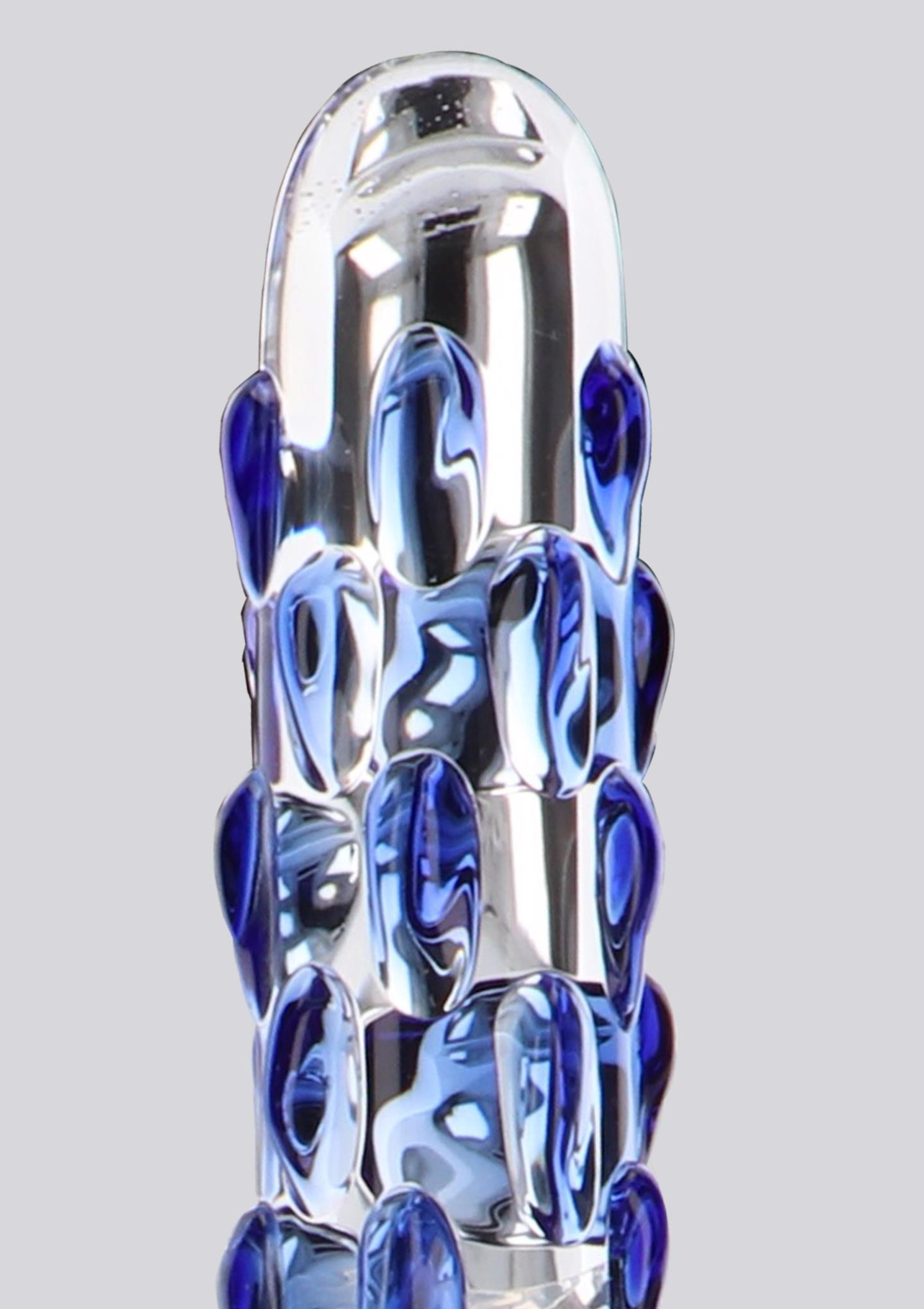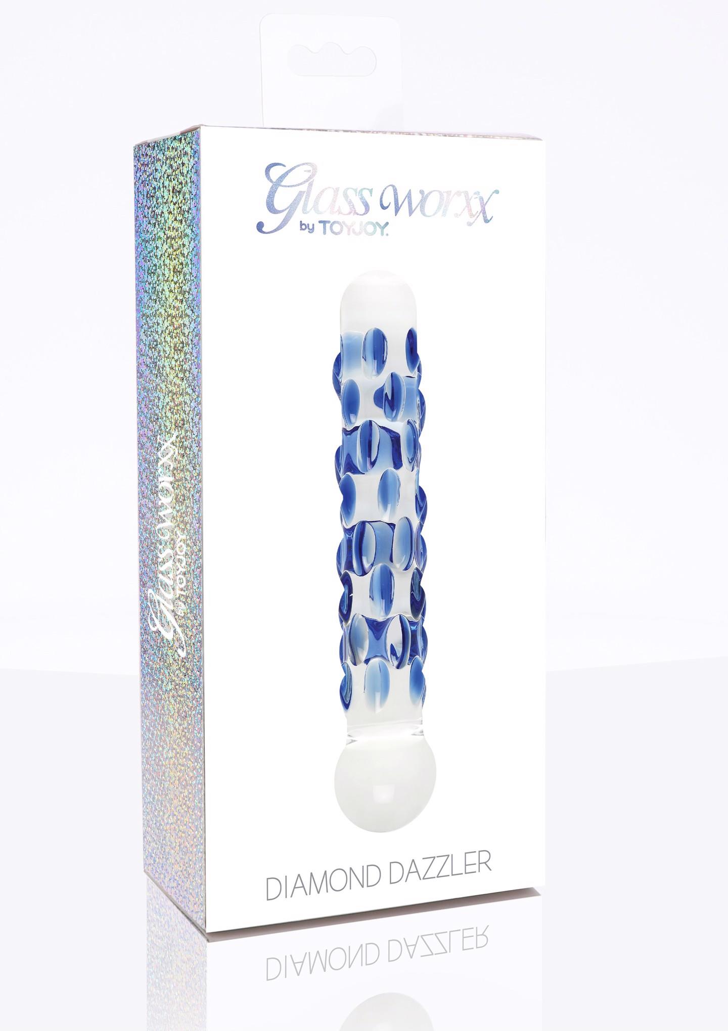 The Diamond Dazzler by TOYJOY GLASS WORXX is a unique dildo with a sexy texture. The silhouette features beautiful blue pleasure nubs, which tease your hot spots with mind-blowing stimulation and add an unexpected element of pleasure to your intimate play. Smooth, stylish, and classy: TOYJOY GLASS WORXX is a luxurious, hypoallergenic choice in intimate pleasure. This elegant collection of glass toys is sensually sculpted for your ultimate satisfaction. These highly-durable sex toys are made of first-class, non-porous glass that feels deliciously smooth to the touch, and offer many body-safe play options. Heat the glass under a warm water tap for warm, seductive indulgence. Or cool the glass with cold water for a tantalizing chilly touch that will make your toes curl with delight. TOYJOY GLASS WORXX is a prime choice for all your erotic fantasies, providing pure bliss, sculpted in the finest glass silhouettes. Now in a new packaging.