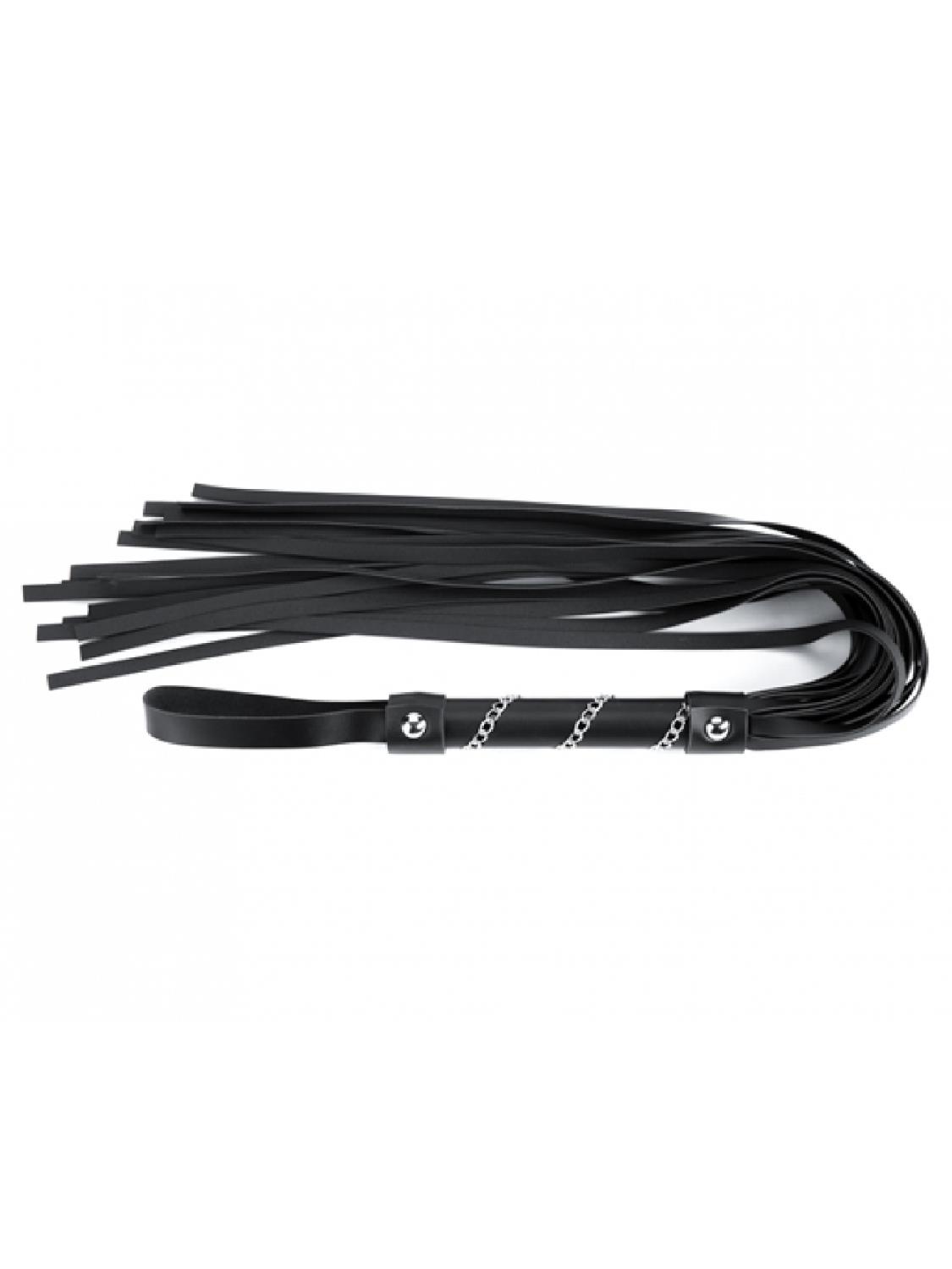Flogger z diamentową rączką i skórzanymi szczepami. Dostarczany w ekskluzywnym pudełku z nadrukowanym srebrnym logo 3D. Wykonany z PVC, metalu bez niklu i drewna. Rączka jest zaprojektowana dla idealnego chwytu, a metal na rączce przechodzi spiralnie wokół niej. Na górze posiada skórzany pierścień do przechowywania i eksponowania. Średnica pudełka to 25x8x4 cm.