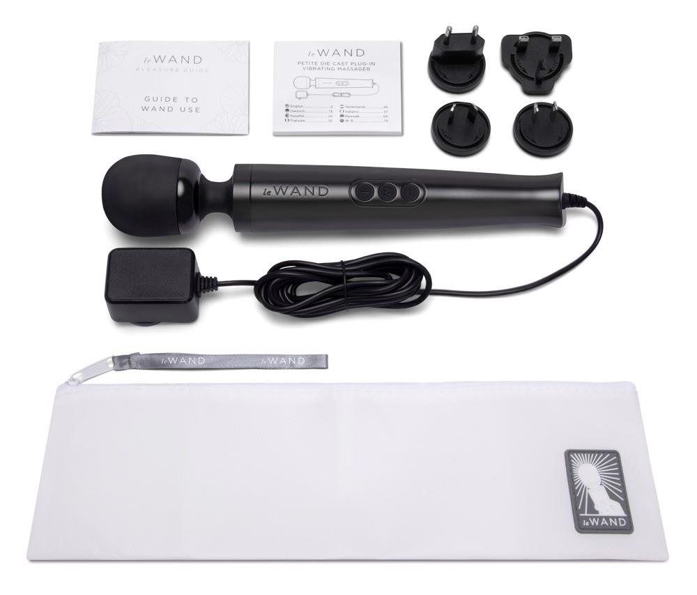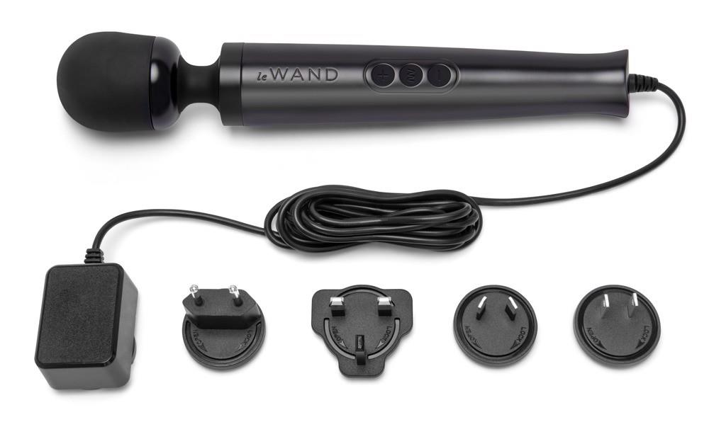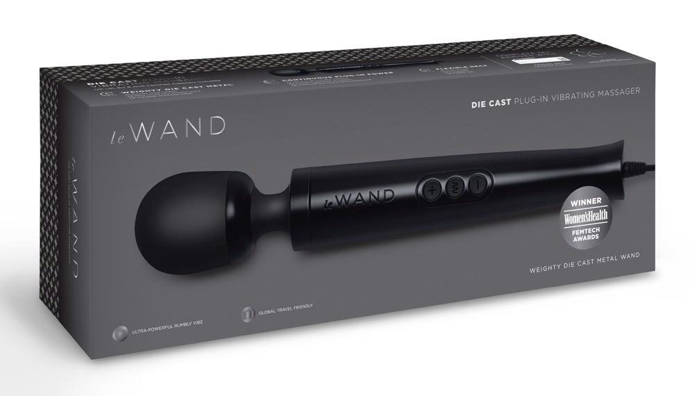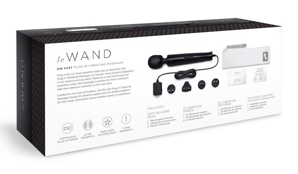 Wired luxury massage wand Diecast Plug-In by le Wand for intense massage pleasure with non-stop power. In the classic wand design – but more compact, slightly smaller and much easier to handle! 20 vibration modes in 10 intensities provide individual massage pleasure and can be easily controlled with the 3-button control on the handle.
