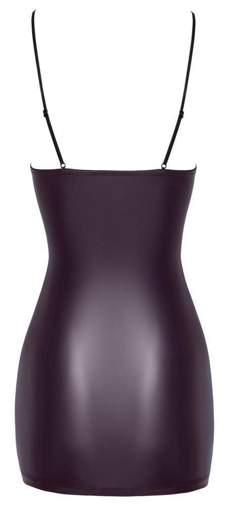 Short, tight dress in semi-transparent black with a light elegant gloss. Soft and stretchy all around for a high wearing comfort. The plunging V-neckline at the front and each side of the skirt have iridescent silver eyelets with a silver-coloured cord for an exciting lacing that can be adjusted.