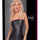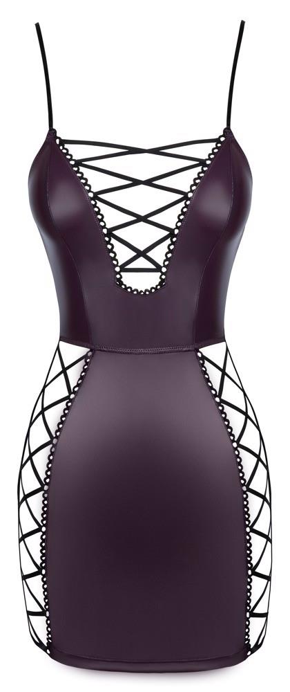 Short, tight dress in semi-transparent black with a light elegant gloss. Soft and stretchy all around for a high wearing comfort. The plunging V-neckline at the front and each side of the skirt have iridescent silver eyelets with a silver-coloured cord for an exciting lacing that can be adjusted.