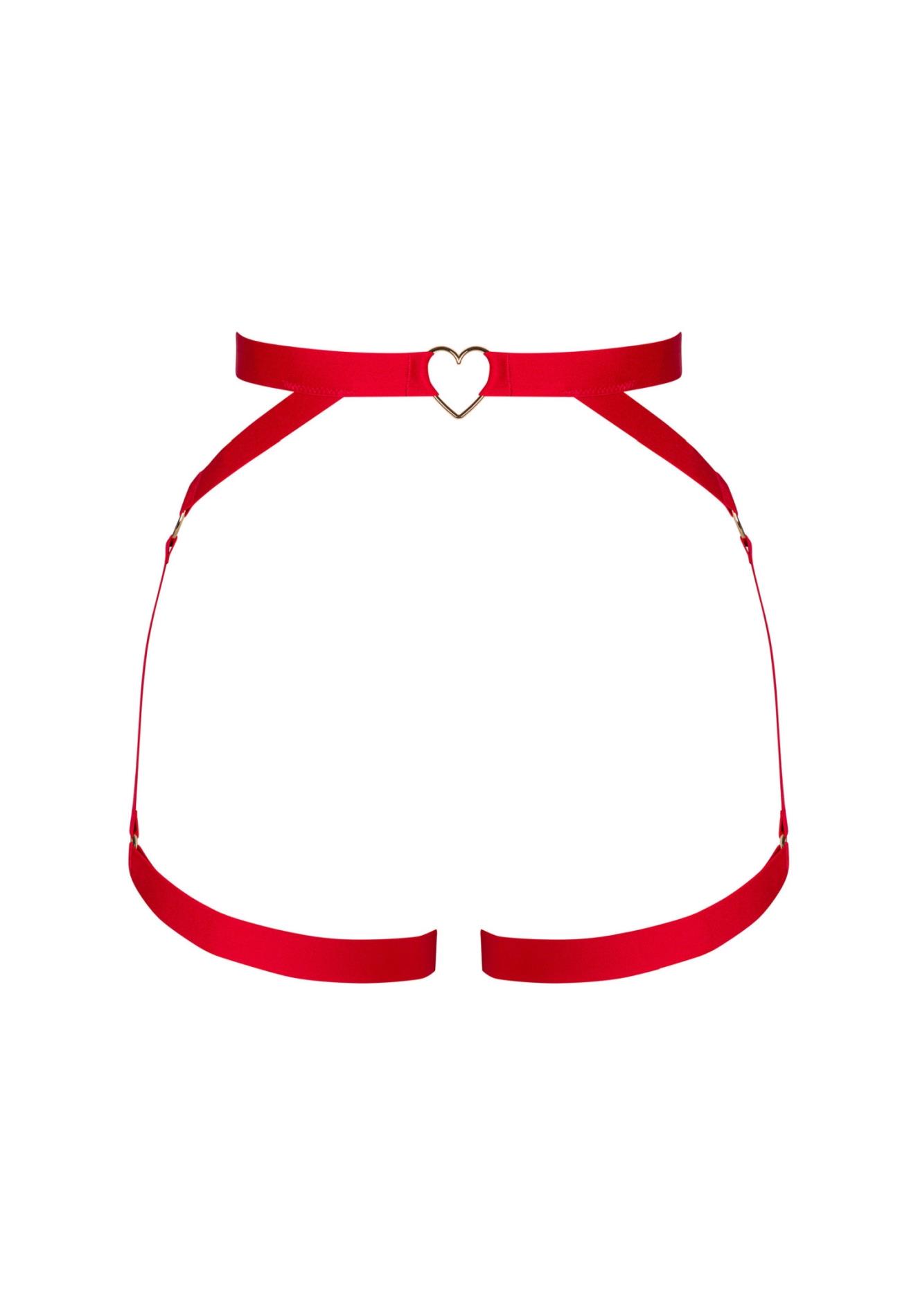 Rozgrzej atmosferę, gdy tylko pojawisz się w Waszej sypialni! Postaw na oryginalne rozwiązania i spraw, żeby cała uwaga była skupiona na Tobie. Zaprojektowana z pasków w kolorze intensywnej czerwieni uprząż zachwyca designem oraz intrygującymi detalami. Przekonaj się sama!