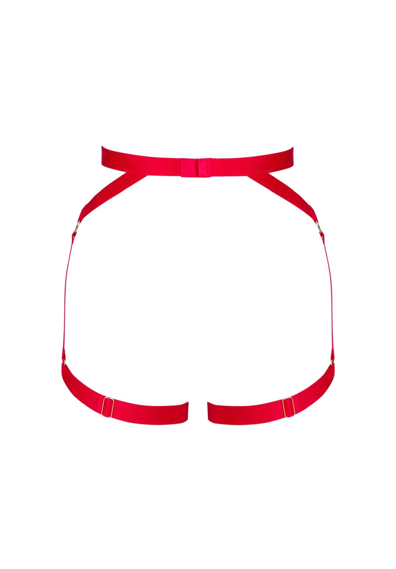 Rozgrzej atmosferę, gdy tylko pojawisz się w Waszej sypialni! Postaw na oryginalne rozwiązania i spraw, żeby cała uwaga była skupiona na Tobie. Zaprojektowana z pasków w kolorze intensywnej czerwieni uprząż zachwyca designem oraz intrygującymi detalami. Przekonaj się sama!