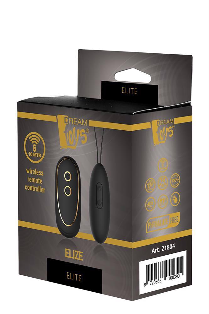 Elize to wibrujące jajko z pilotem. Cudowna zabawka do wewnętrznej stymulacji z łatwą obsługą i mocnym sznurkiem do łatwego wyciągania. Jajko Elize ma stylowy wygląd dzięki gładkiemu owalnemu kształtowi i czarnej skórze wykonanej z silikonu Ultra Premium. To jajko przyjemności oferuje 7 rytmów wibracji i 3 prędkości, oferując idealną wibrację na każdy gust.