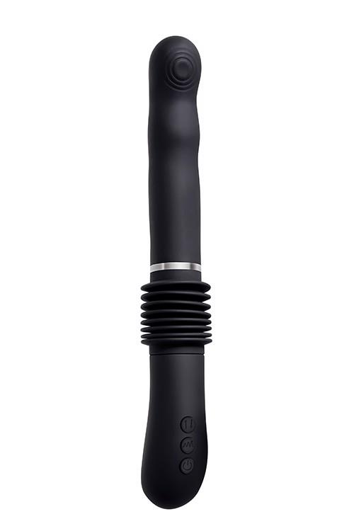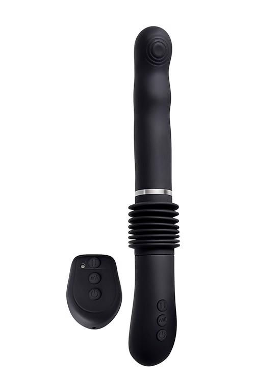 Take a wild ride on a powerful, thrusting machine that rocks your G-spot and leaves you thoroughly satisfied! Feel the earth-moving vibrations deep inside your body as you groove to the circle textures against your G-spot and relish the thrusting shaft that seems to have a mind of its own! Then to transform your experience into a hands-free fantasy, simply click in the removable suction mount and point it in any direction you desire, using the wireless remote control to get the perfect combination of mind-melting vibes and over 3 inches (7,6 cm) of thrust! Recharge both the toy and the remote with a secure USB connection to keep your sex machine ready for its next use! Powerful G-spot thrusting vibrator7 Vibrating speeds and functions3 Thrusting speedsOver 3 inch (7,6 cm) of thrust Remote controlled or manualRemovable suction cup mount, 3 inch / 7,6 cmMount adjusts to all angles, push-release to removePerfect for hands-free realistic playGive remote to partner for couples playRemote control range 23 feet / 7 meterG-spot head with circular texturesMade from smooth siliconeDetail made from durable ABS plasticEasy to use 3 button control on toy and remoteLED lights illuminate buttons when in useVibe height: 12.5 inch / 31,75 cmInsertable length: 6 inch / 15,2 cm Vibe width: 1.44 inch / 3,6 cm Vibe depth: 1.53 inch / 3,9 cm Remote height: 2.3 inch / 5,8 cm Remote width: 1.66 inch / 4,2 cm Remote depth: 0.65 inch / 1,6 cmRechargeable, USB cable includedRechargeable remote controlSplash proof, not waterproof