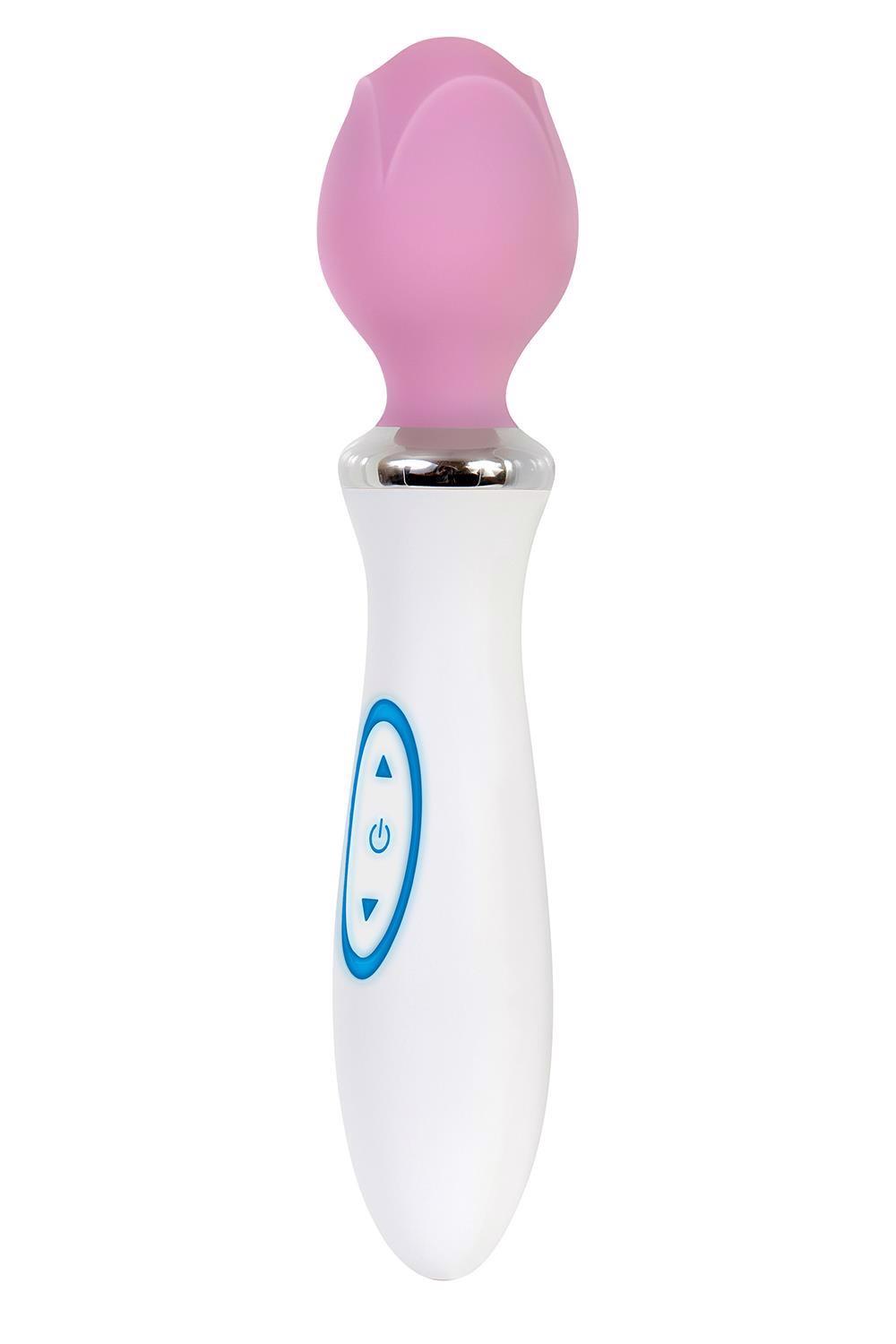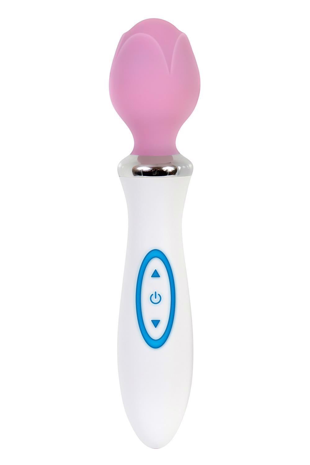 Power meets beauty with this intense wand vibrator that delivers five potent speeds and seven exhilarating functions. Its elegant flower-shaped tip is curved and rounded with a precise design that lets your pleasure blossom to its fullest potential. LED lights inside the flower and control panel display your settings, while the ergonomic handle allows your hands to fully relax. Clean up is a snap with toy cleaner and a warm water rinse. Powerful wand vibratorIntense clitoral stimulationMade with luxurious silicone5 Powerful speeds and 7 functionsRecharcheable, USB cable includedElegant LED flower-shaped tipControl base with LED lightsTotal length 8.4″/ 21,3 cmInsertable length 2.6” / 6,6 cmWidth 1.8″ / 4,6 cmChrome finished collarSilky smooth ergonomic handlePhthalate & Latex free