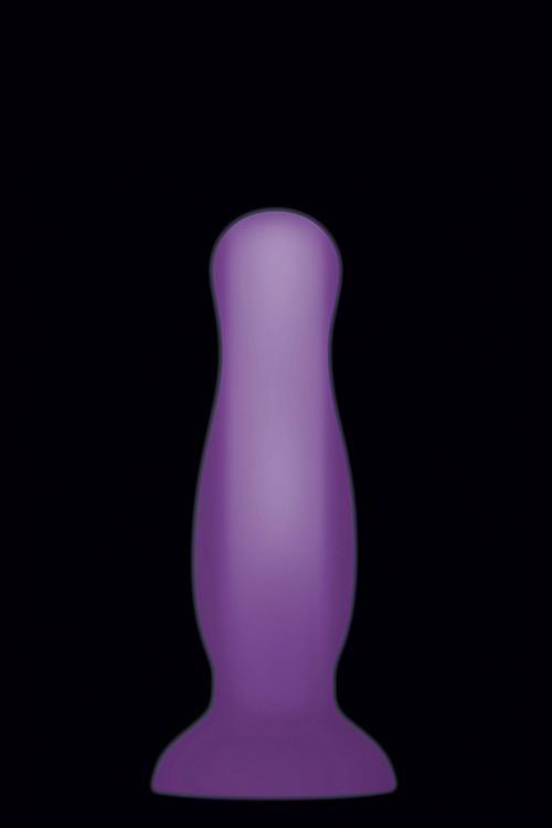 Unlock your back-door potential in style! This soft and squishy butt plug glows a majestic purple in the dark for fun with your partner or solo navigation. If you have some experience with anal play, it’s the perfect size to keep exploring –you’ll love the soft and squishy bowling pin shape that tantalizes as it slips in and then widens out to let you find your happy place. The flared base makes sure accidents never happen –and its powerful suction cup gives you a hands-free play option! Clean with toy cleaner and a hot water rinse.Soft, squishy medium-sized glow in the dark butt plugFlexible bowling pin shape for titillating insertionMade from body-safe smooth siliconeDual Layered for a cushioned feelPurple inner layer glows in the darkClear outer layer to magnify glowPowerful flared suction cup base for hands-free playDimensions: Length: 12,8 cm, Depth: 3,5 cm, Width: 3,5 cm, Weight: 102 gramPhthalate & latex freeWaterproof & submersible