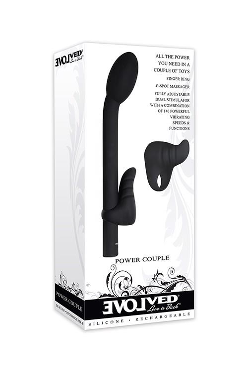 A simultaneous G-spot & clitoral orgasm is one of the most intensely pleasurable experiences available to a woman, and this pair of toys can help make it happen! The silky-smooth rounded head of the Power G is designed to stimulate the G-spot correctly, with a shaft precisely angled to reach its mark, and the Pinkie Promise provides clitoral vibrations that deliver body-melting sensations, not to mention erotic massage for him anywhere you place it. Explore all the delicious possibilities together, even in the bath or shower as both toys are fully submersible in water.Power GDesigned to stimulate the G-SpotAngled shaft and smooth rounded head targets G-spotMade from silky-smooth PU coated plastic7 powerful speeds and functionsElegant, simple one-touch controlTotal length: 8.25 inch = 20,9 cm, Depth: 1.5 inch = 3,8 cm, Width: 1.75 inch = 4,4 cmCompletely rechargeable, USB cable includedWaterproof & fully submersiblePthalate & latex freePinkie PromisePinkie shaped vibrating finger ringPerfect for clitoral stimulationMassages men’s erogenous zones tooSlips over finger with comfortable gripGrooved body for added pleasureMade from creamy smooth silicone20 powerful vibrating functionsBlue LED light in button for visibilityRechargeable, USB cable incl.Finger Ring: Height: 2.4 inch = 6 cm, Depth: 1.73 = 4,4 cm, Width: 1.31 inch = 3,3 cmPhthalate & latex freeWaterproof & submersible