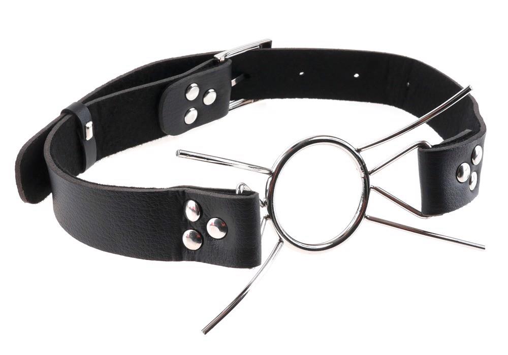 W grach pożądania i podporządkowania ten knebel jest tylko właściwym narzędziem. Pierścień i cztery zakrzywione rozpórki ze stali nierdzewnej utrzymują otwór wylotowy łodzi podwodnej na stałe otwarty. W celu dodatkowego pogłębienia wiedzy i wprowadzenia różnych rzeczy lub płynów. Skórzany pasek na głowę jest regulowany dla każdego rozmiaru głowy zapięciem na klamrę.