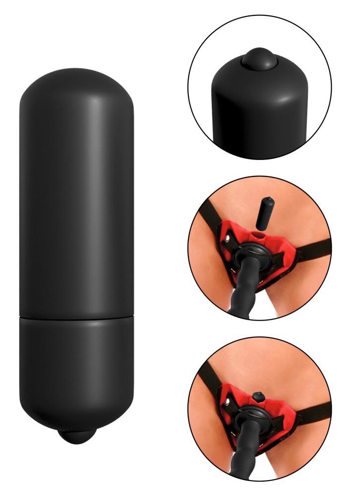Strap-on z wyjmowanym dildo i wibrobulletem. Dla nieograniczonej zabawy w peggingu i spełnienia lesbijskich marzeń o pchnięciach. Dildo z ekstra pulchną żołędzią i z przyssawką – również solo, a nawet do zabawy bez użycia rąk. Może być włożony do paska z przodu za pomocą pierścienia i przycisków – każde inne dildo/wibrator z przyssawką może być również włożone do paska. Dołączona wibrobulletka może być również umieszczona w przedniej części paska dla dodatkowej stymulacji mrowienia. Uprząż z paskiem jest regulowana, aby zapewnić antypoślizgowe dopasowanie.