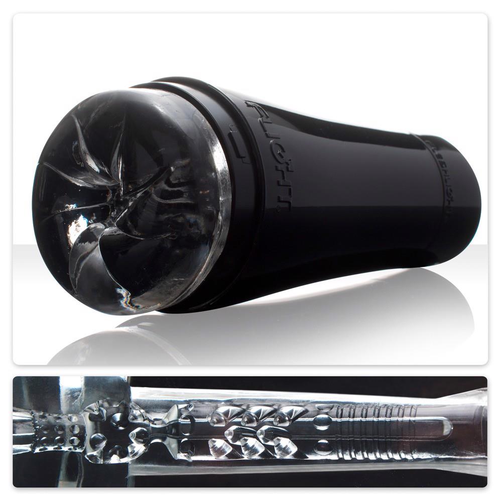 Przezroczysty masturbator z kanałem rozkoszy i wąskim otworem anusowym w czarnym pudełku. Długość całkowita = głębokość wsunięcia 20 cm. Wąskie średnica można rozciągnąć. Materiał: TPE. Dołączona próbka smaru i instrukcja użycia.