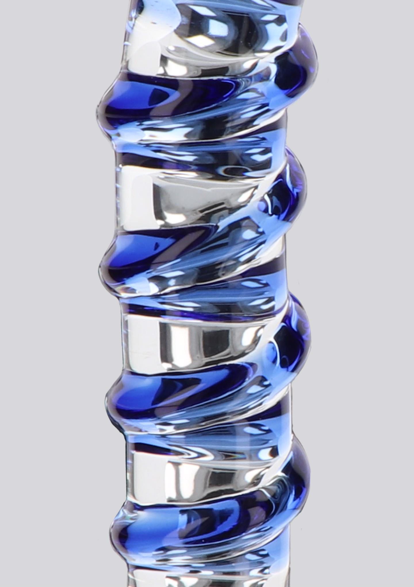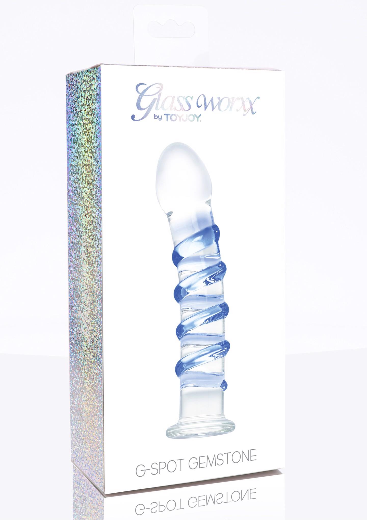 The G-Spot Gemstone by TOYJOY GLASS WORXX is a superb G-spot dildo with sexy curves. The silhouette is slightly curved to hit all the right spots, whilst the beautiful blue swirl detail on the shaft adds extra stimulation to your erotic satisfaction. Smooth, stylish, and classy: TOYJOY GLASS WORXX is a luxurious, hypoallergenic choice in intimate pleasure. This elegant collection of glass toys is sensually sculpted for your ultimate satisfaction. These highly-durable sex toys are made of first-class, non-porous glass that feels deliciously smooth to the touch, and offer many body-safe play options. Heat the glass under a warm water tap for warm, seductive indulgence. Or cool the glass with cold water for a tantalizing chilly touch that will make your toes curl with delight. TOYJOY GLASS WORXX is a prime choice for all your erotic fantasies, providing pure bliss, sculpted in the finest glass silhouettes. Now in a new packaging.