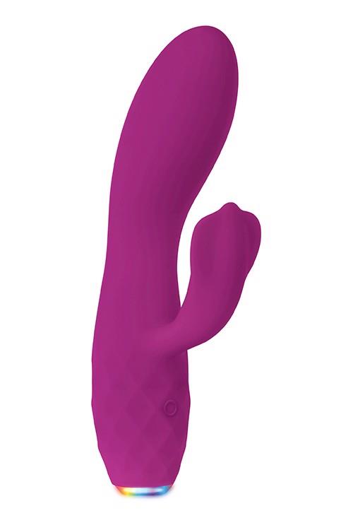 Find your bliss with this elegantly shaped toy, featuring a light-up base that glows with a new color for every function. Two powerful motors carry you away through seven vibrations of your choice as you build to a spectacular climax! The curves in each shaft are tailored for a woman’s body, and the waterproof, submersible design brings a whole new experience to bath and shower time! Clean with toy cleaner and a warm water rinse.Elegant dual vibe with light up basePerfect for blended orgasmsGently curved flexible shaft for G-spot stimulationMade from luxurious silicone & ABS plastic7 Powerful vibrating functions2 Powerful motors, controlled togetherLED multicolor light on baseLED changes color with each functionDimensions: Length: 16,5 cm, Depth: 6 cm, Width: 3,4 cmDiamond patterned textured basePhthalate & latex freeRechargeable, USB cable includedWaterproof & submersible